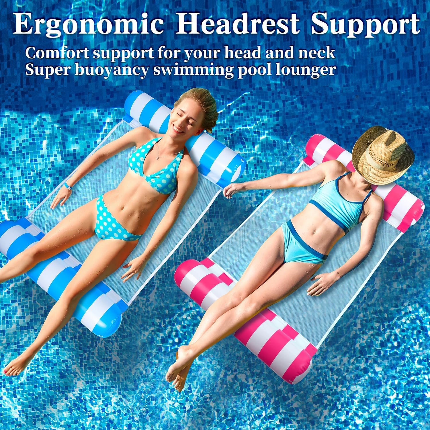 8 Pack Pool Hammock Upgrated Water Pool Floats, 4-in-1 (Hammock, Saddle, Lounge Chair, Drifter) Multi-Purpose Water Pool Float, Non-Stick PVC Material