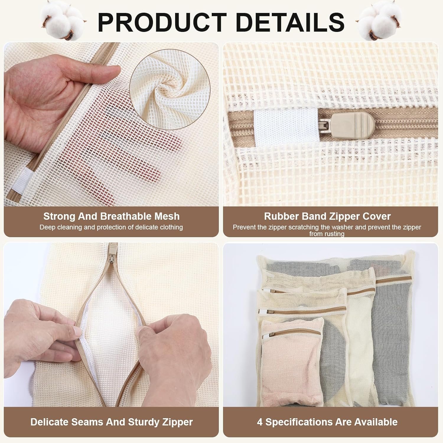 【Craftsmanship and Quality】Our cotton mesh laundry bags are sewn by skilled craftsmen. The fine sewing and quality control make the bags more delicate and firm , say goodbye to the trouble of unraveling
