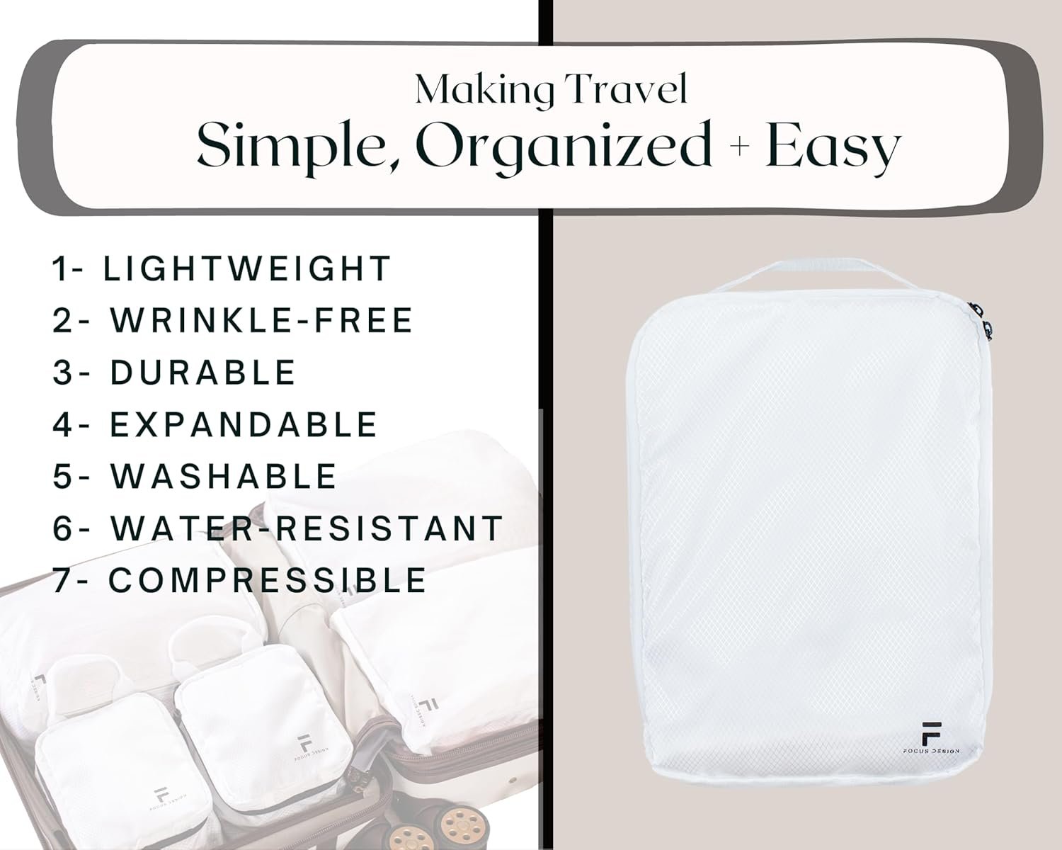 [Organization & Style]: Our stylish and sleek compression cubes are available in black or white, making them the perfect addition to any suitcase. With our compression bags, you’ll be able to stay organized while packing for your next trip.