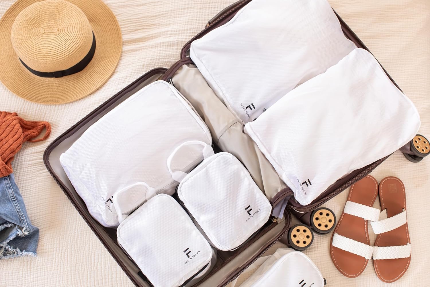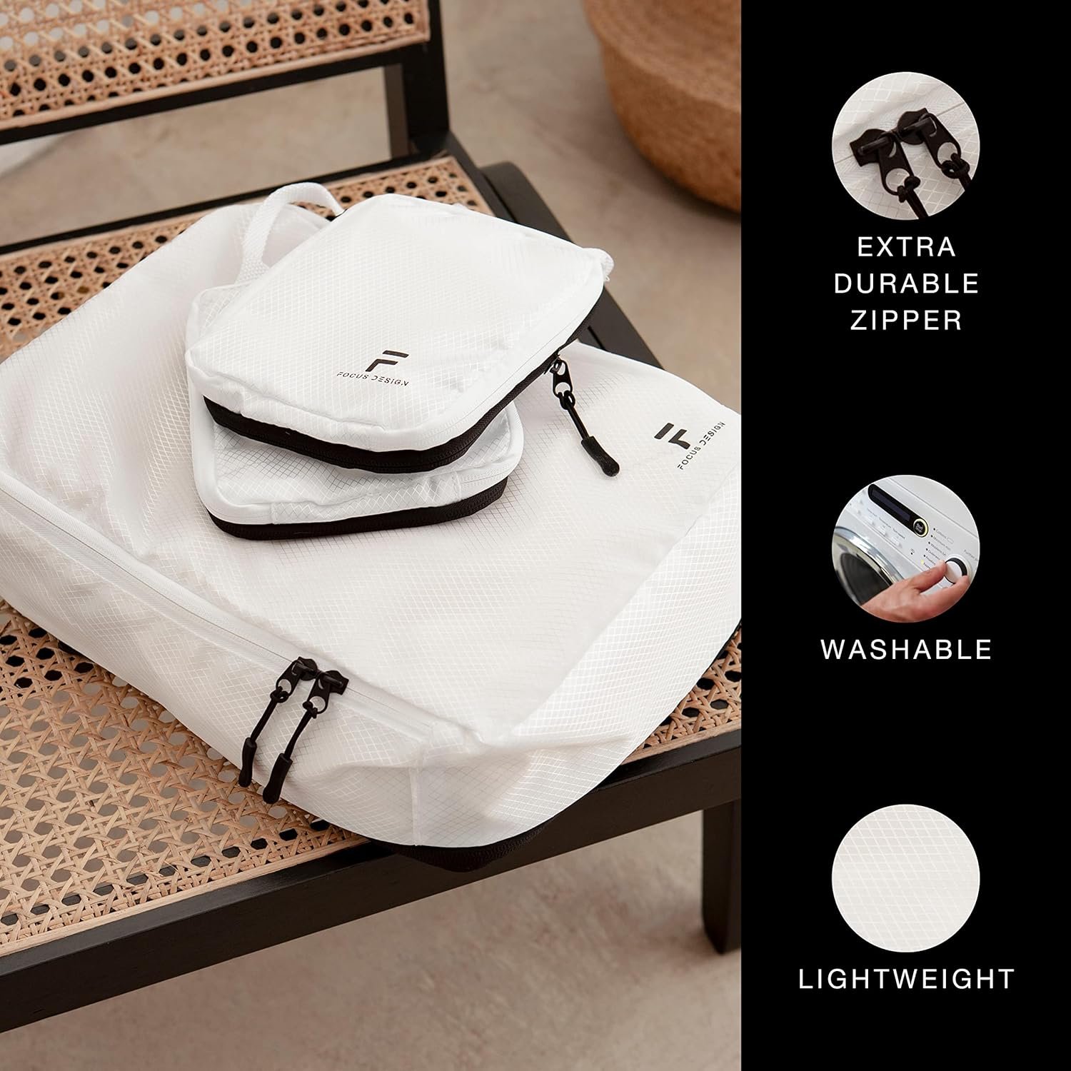 8 Piece Compression Packing Cubes Set – Double Capacity Design for Travel – Small, Medium & Large Sizes – Carry-On Suitcase Organizer Bags (White)