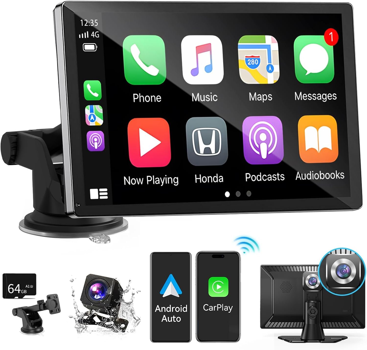 9 inch HD Portable Wireless carplay Screen for car & Android Auto Touchscreen with 4K Dash Cam/1080P Backup Camera/Mirror Link/Navigation/Voice Control/Car Stereo/Drive Play/Bluetooth