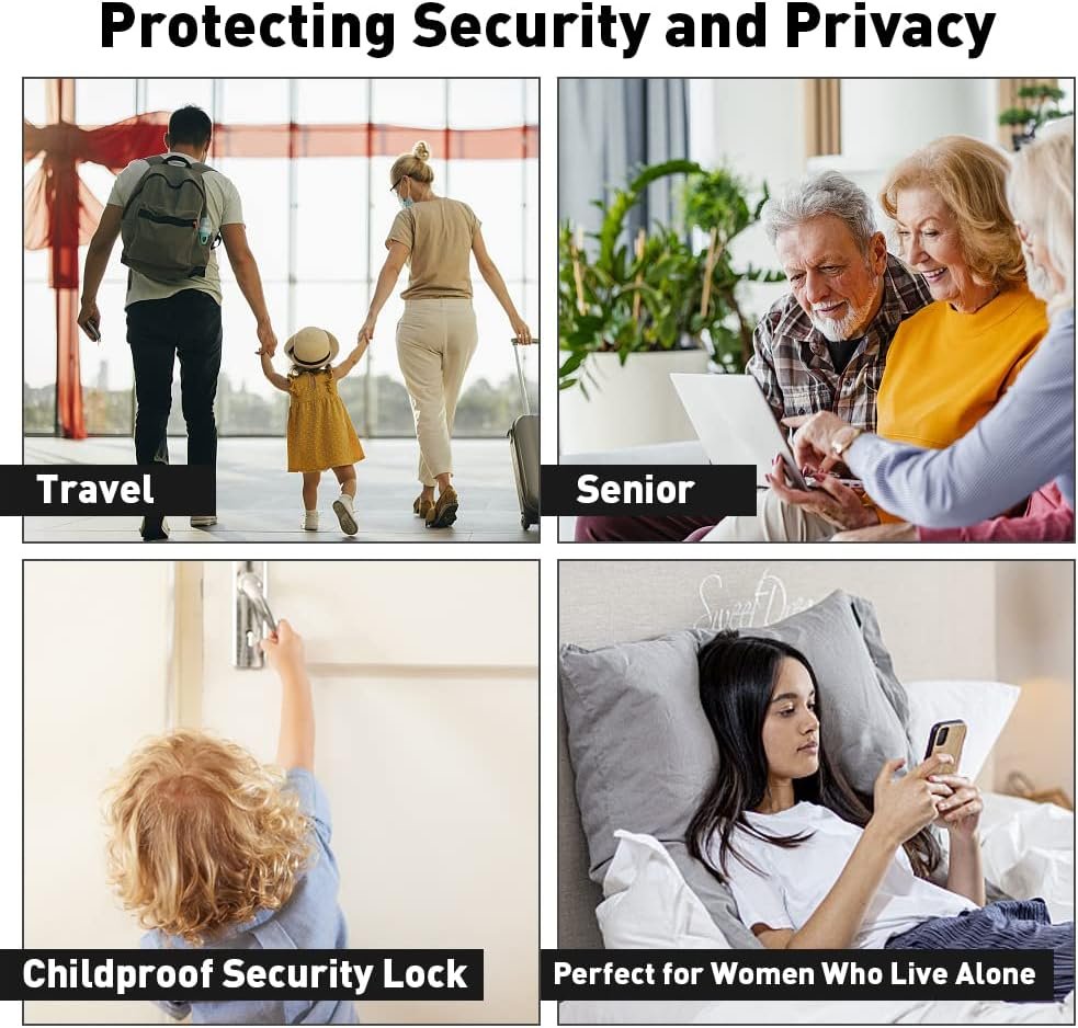 The hotel safety door lock is easy to install or remove without any tools. The travel lock is small, light compared to other portable locks that can be carried in your pocket or handbag to provide self-protection.