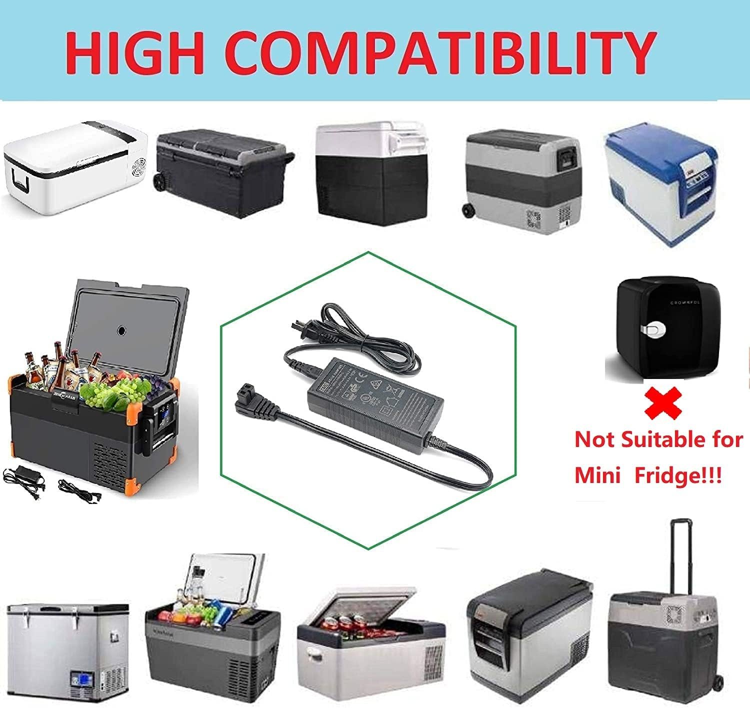 Product Specifications: AC Power Plug for Portable Car Fridge FreezerNormal Input AC Voltage: 100~240VAC/50~60HZOutput Rated Voltage: 14.5V±5%Output Current Range: 0A~6ACompatibility& Application: COMPATIABLE WITH Other Brands Portable Car RefrigeratorWhat’s in the BoxAC AdapterCar Refrigerator SocketNote:Before Purchasing, Please Confirm Whether it Conforms to your DC Plug / Power Socket and Output Voltage