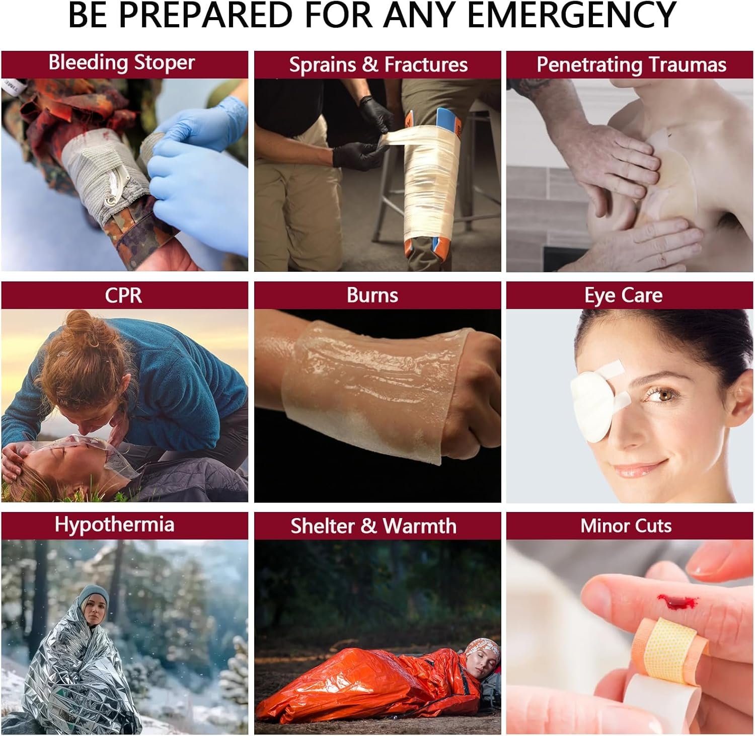 First Aid Suppiles for Comprehensive Usability:This is a Premium first aid kit with advanced accessories upgraded by a professional team. Helps with emergency needs outdoors, home, or in the car, such as camping, hiking, or during hurricanes and tornadoes