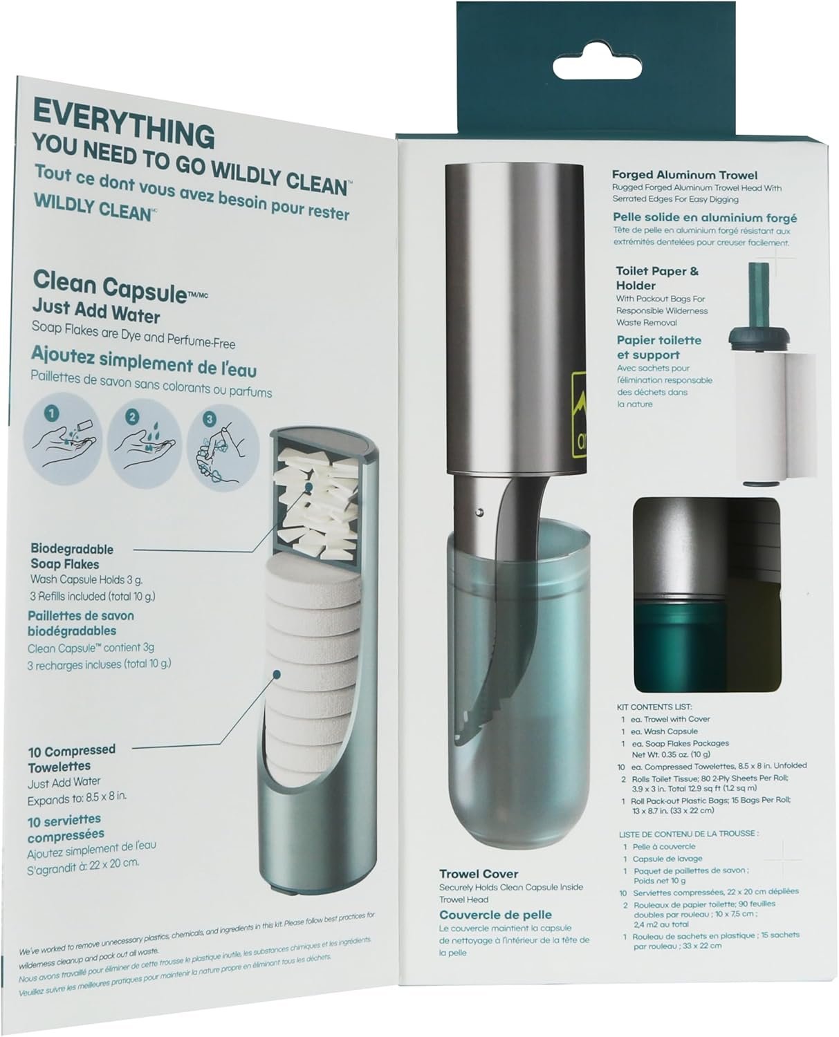 All-in-One Outdoor Bathroom Kit – Answer the call of nature with this all-in-one bathroom kit with a backpacking trowel, toilet paper, pack out baggies, and our Clean Capsule for easy hand washing.