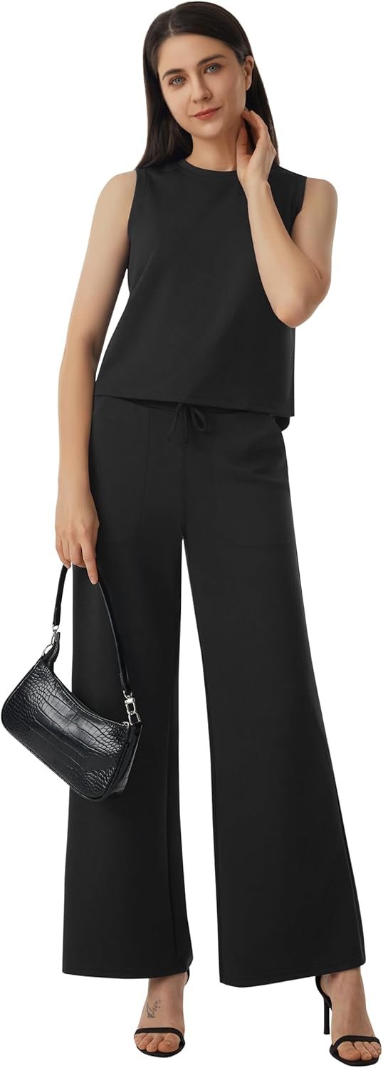 AFITNE Women’s 2 Piece Outfits Air Essentials Sleeveless Tank Crop Top Wide Leg Sweatpants Lounge Set 2025 Tracksuit