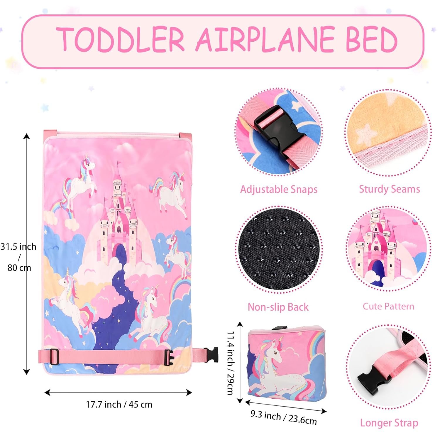 Airplane bed for toddler: Untree airplane seat extender for kids frees your hands for long-time flight with children and make travel adventure a precious memory.