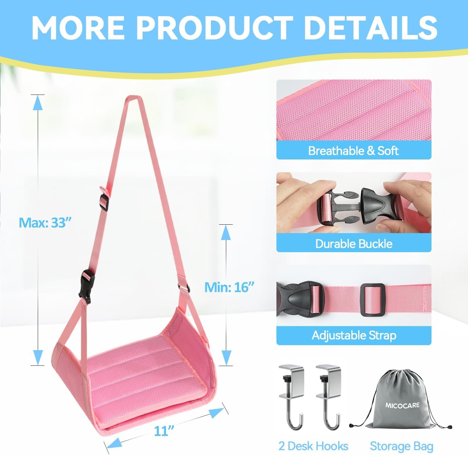 Airplane Foot Rest, Foot Sling for Airplane Travel, Portable Plane Foot Hammock Pillow with 2 Desk Hooks for Long Flights Home Leg Rest Office Nap, Travel Essentials for Adults/Kids(Pink)