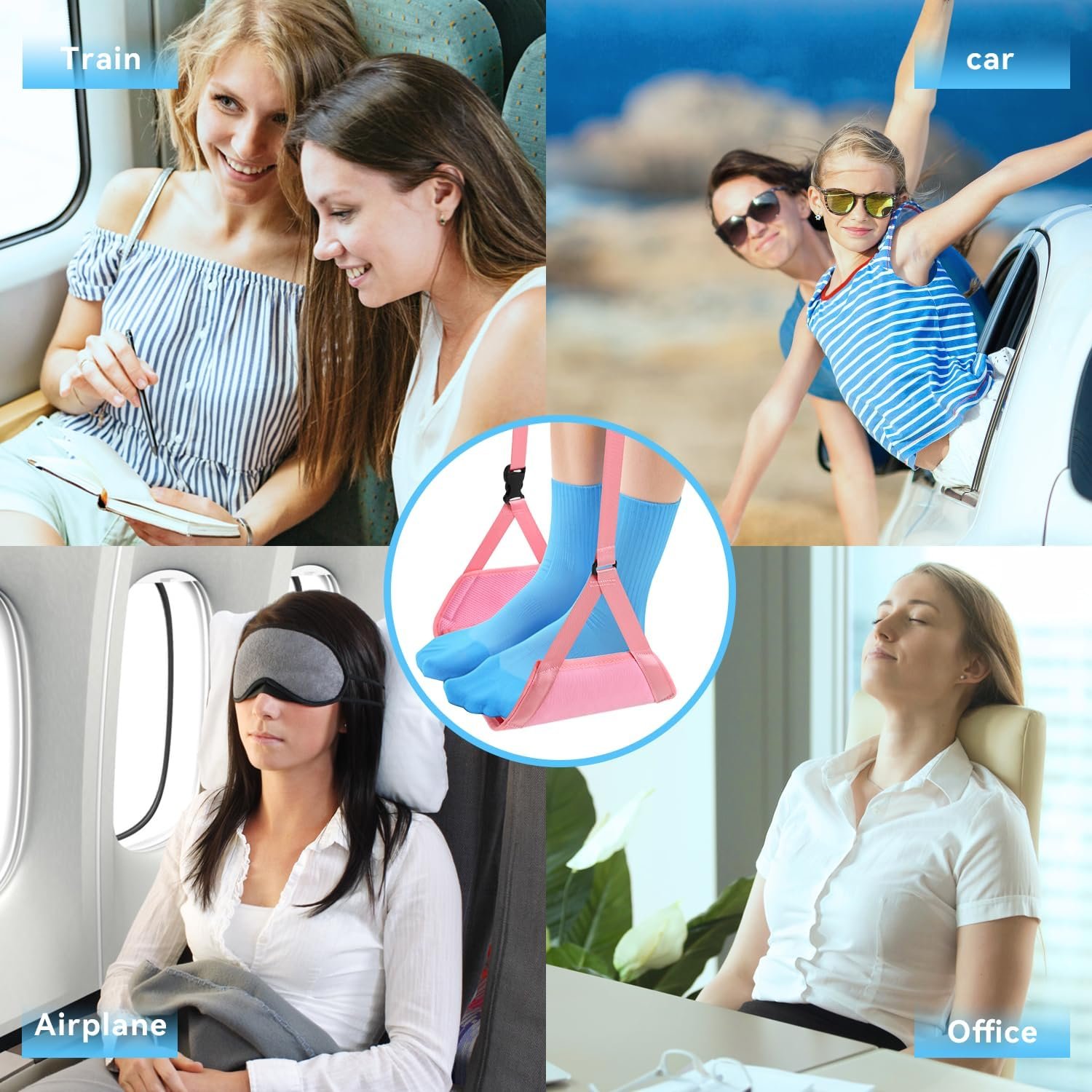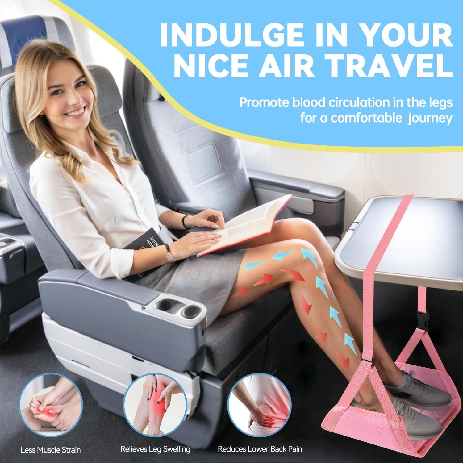 SIT MORE COMFORTABLY: Research shows that using a plane foot hammock not only provides support for your feet, reducing pressure on your lower back, knees, and hips, but also promotes better blood circulation. This helps lower the risk of deep vein thrombosis (DVT) and eases back pain caused by prolonged sitting.