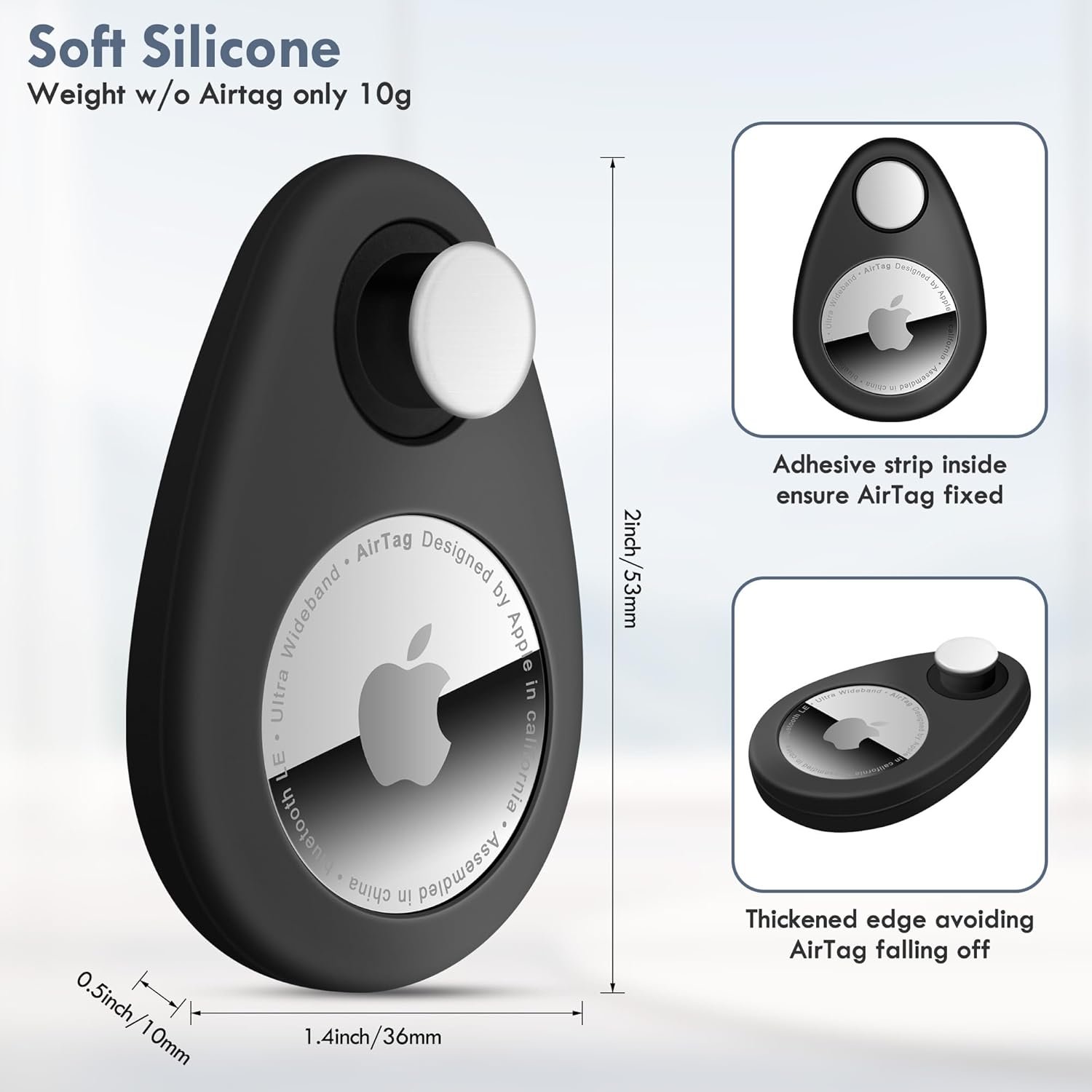 Design for Airtag: This Airtag holder is specially designed for Apple AirTag (Note: AirTag is not included) and fits perfectly to your AirTag size. The edge of the case is thickened to avoid Airtag falling off. The adhesive strip inside the holder ensures Airtag is fixed stably avoiding airtag loss. Note: Not recommended for children under the age of 3, nor directly fixed on the underwear, as the AirTag holder has sharp pins.
