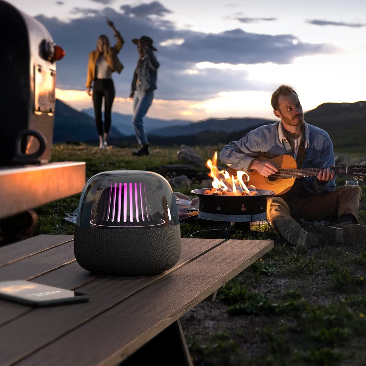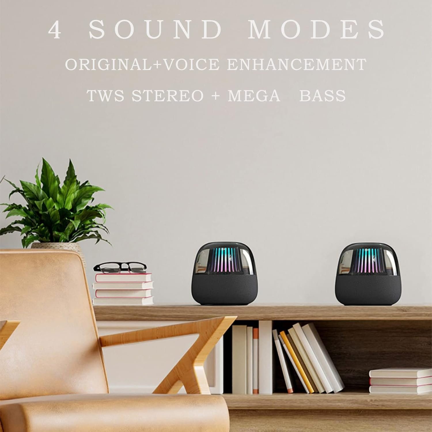 Unique LED Light Show This LED bluetooth speaker comes with 3 modes and 8 lighting effects, including RGB breathing light with single & multicolor, rhythm pulse, colorful dynamic flow & fiery flame. The colorful lighting can be easily switched by using the exclusive APP, which allows you to create a dedicated environment whenever you want.