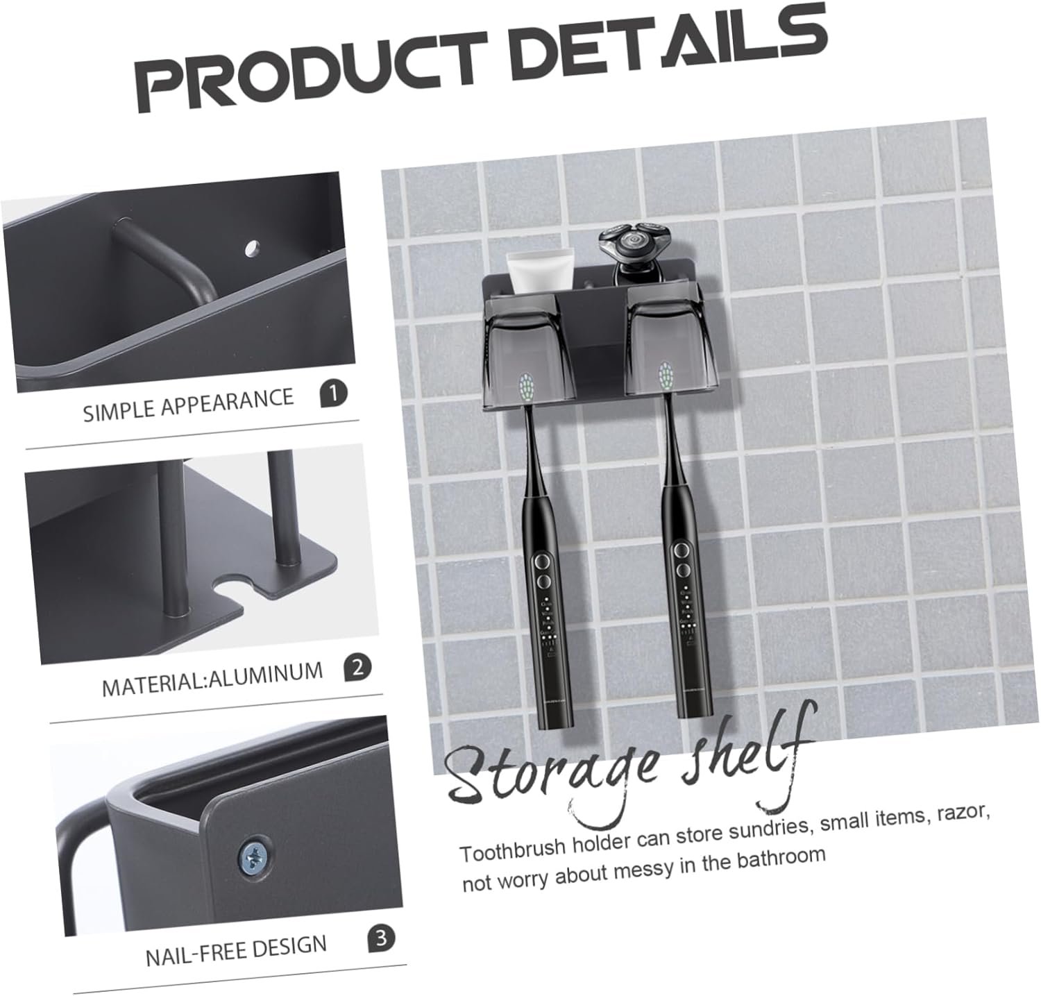 Bathroom accessory:made of , will not fade and deform, strong and , not easy to fall off, nail- storage rack does not hurt the wall and does not take up space,adhesive toothbrush holder
