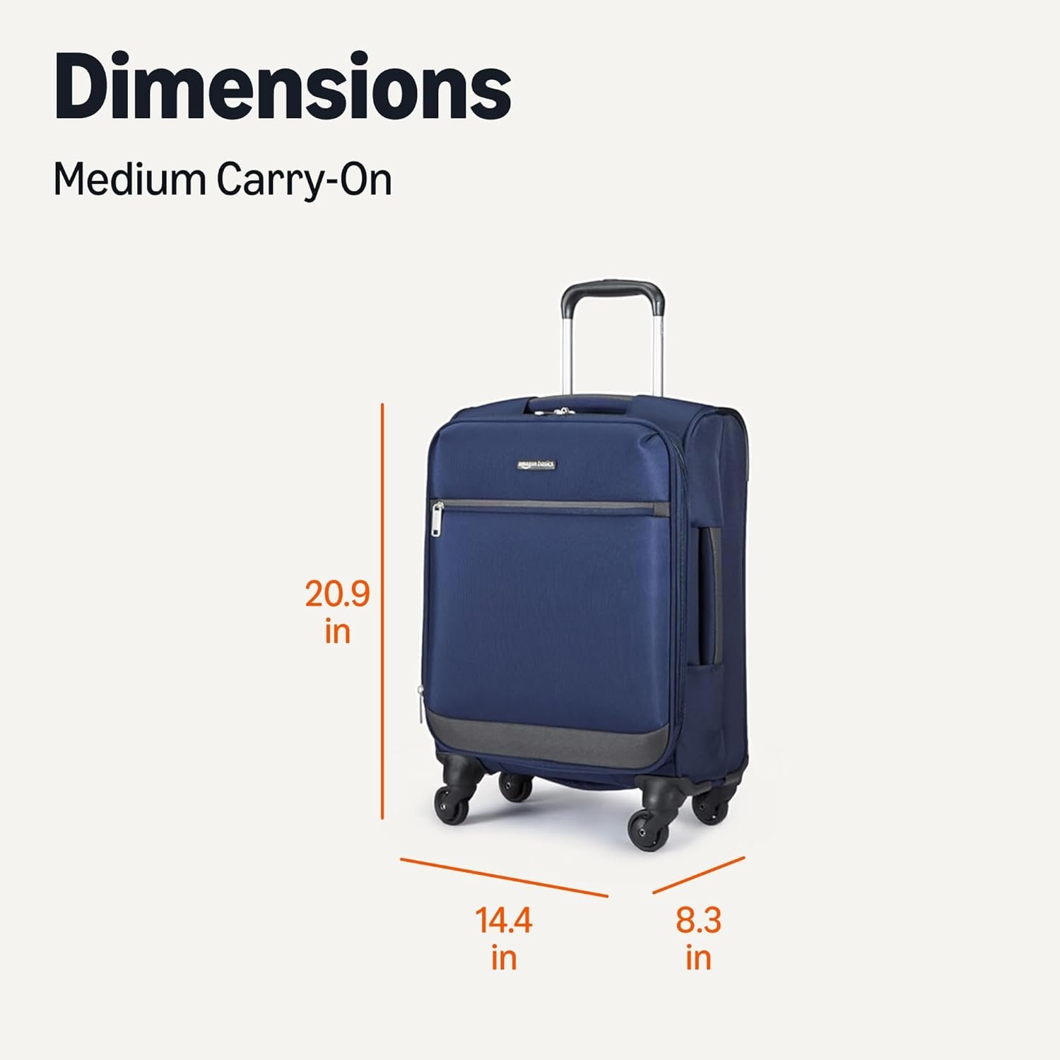 Amazon Basics Luggage, 21″Medium Carry-On Softside Suitcase With Wheels With Four 360-Degree Multi-directional Spinner Wheels Expandable Space Zippered Pocket and Straps Telescopic Handle Navy Blue