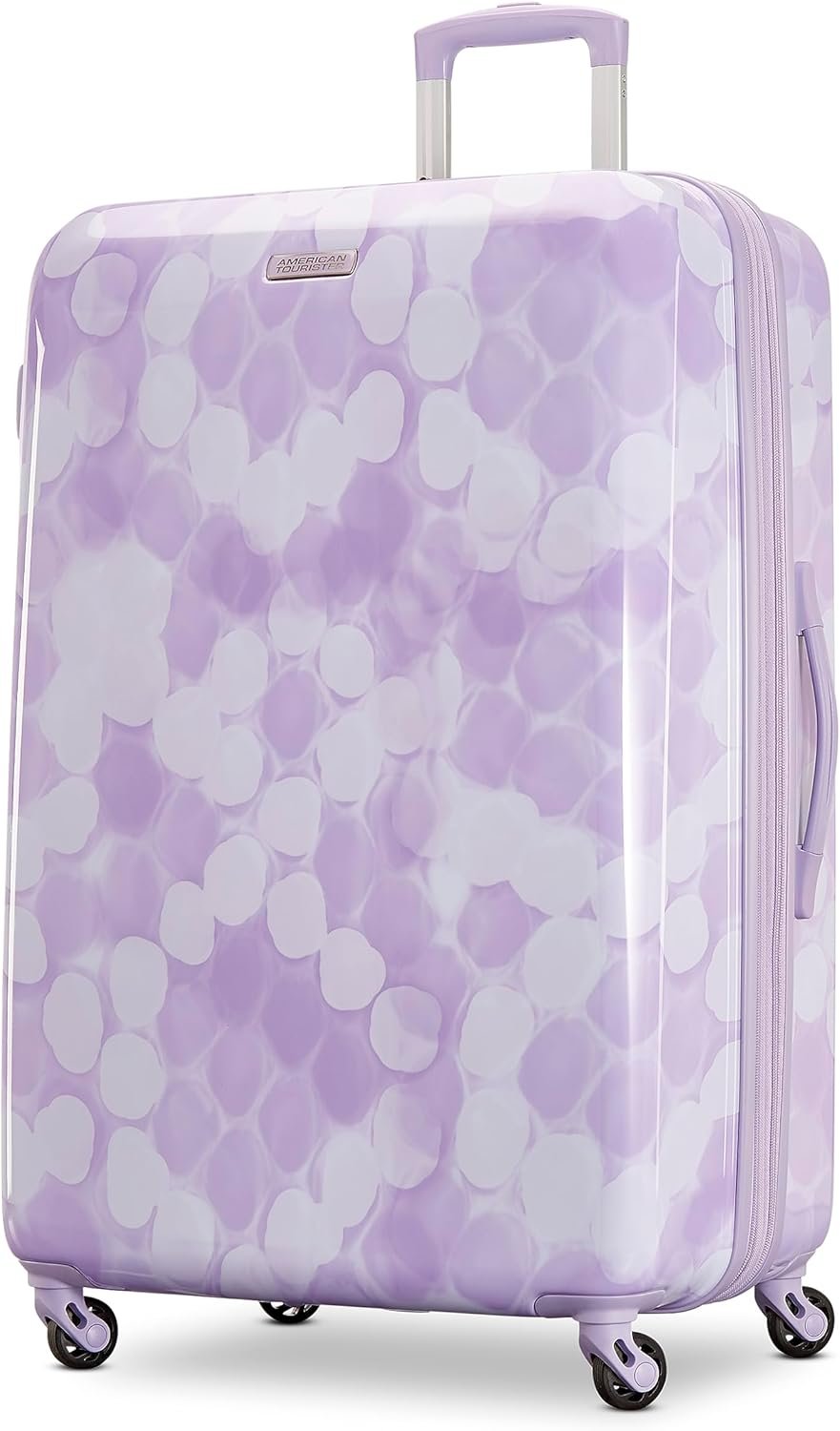 American Tourister Moonlight Hardside Expandable Luggage with Spinner Wheels, Lavender Maze, Checked-Large 28-Inch