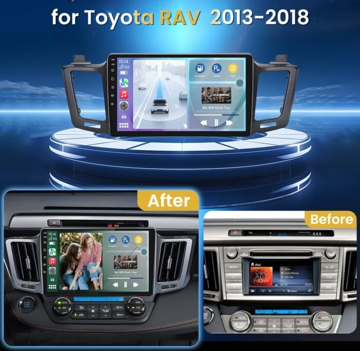 【Compatible Car Models】This car radio is for Toyota RAV4 2013 2014 2015 2016 2017 2018. Plug-and-play design, easy to install. Our upgrade car radio can perfectly integrate with your car, make your car interior feel like completely brand new! The adapter harness is included for your needs. Some models need extra canbus and cables, if you do not know whether it fits your car or not, you can send us pictures of your control center before purchasing