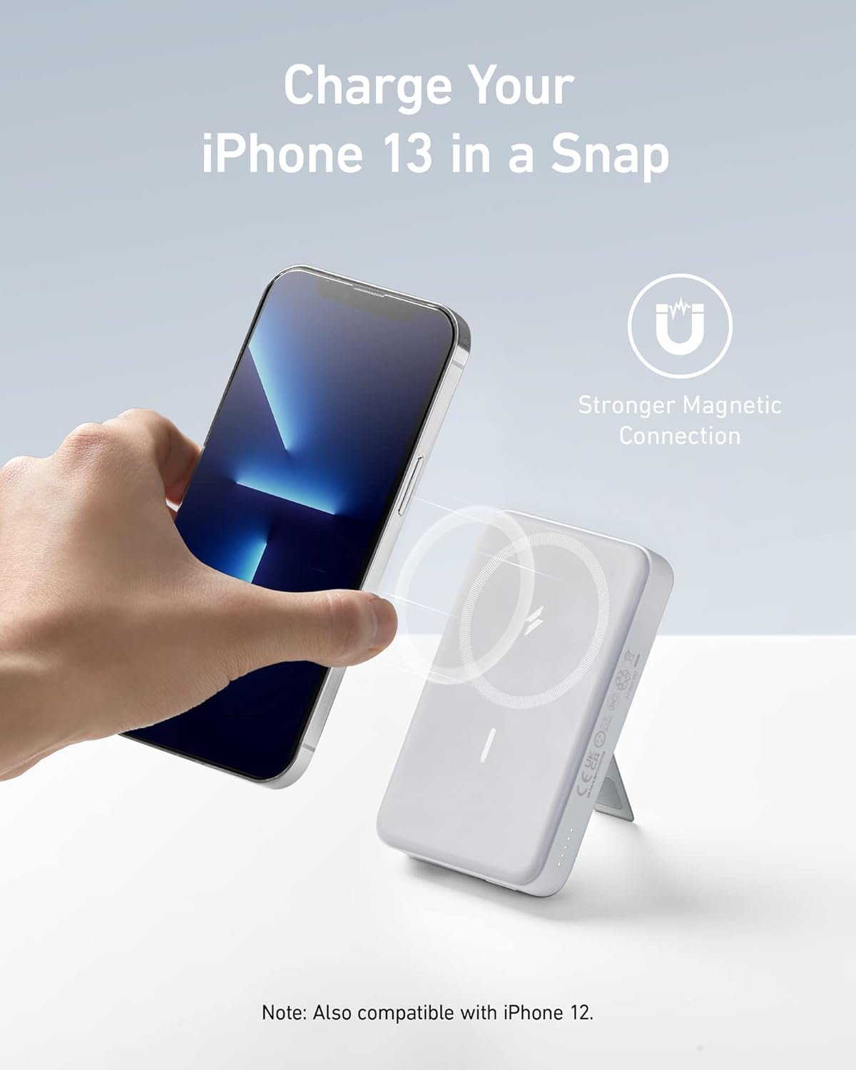View and Charge Simultaneously: The innovative 2-in-1 design of this MagSafe battery pack not only charges your devices wirelessly but also transforms into a foldable stand for hands-free viewing, enhancing your daily screen interactions.