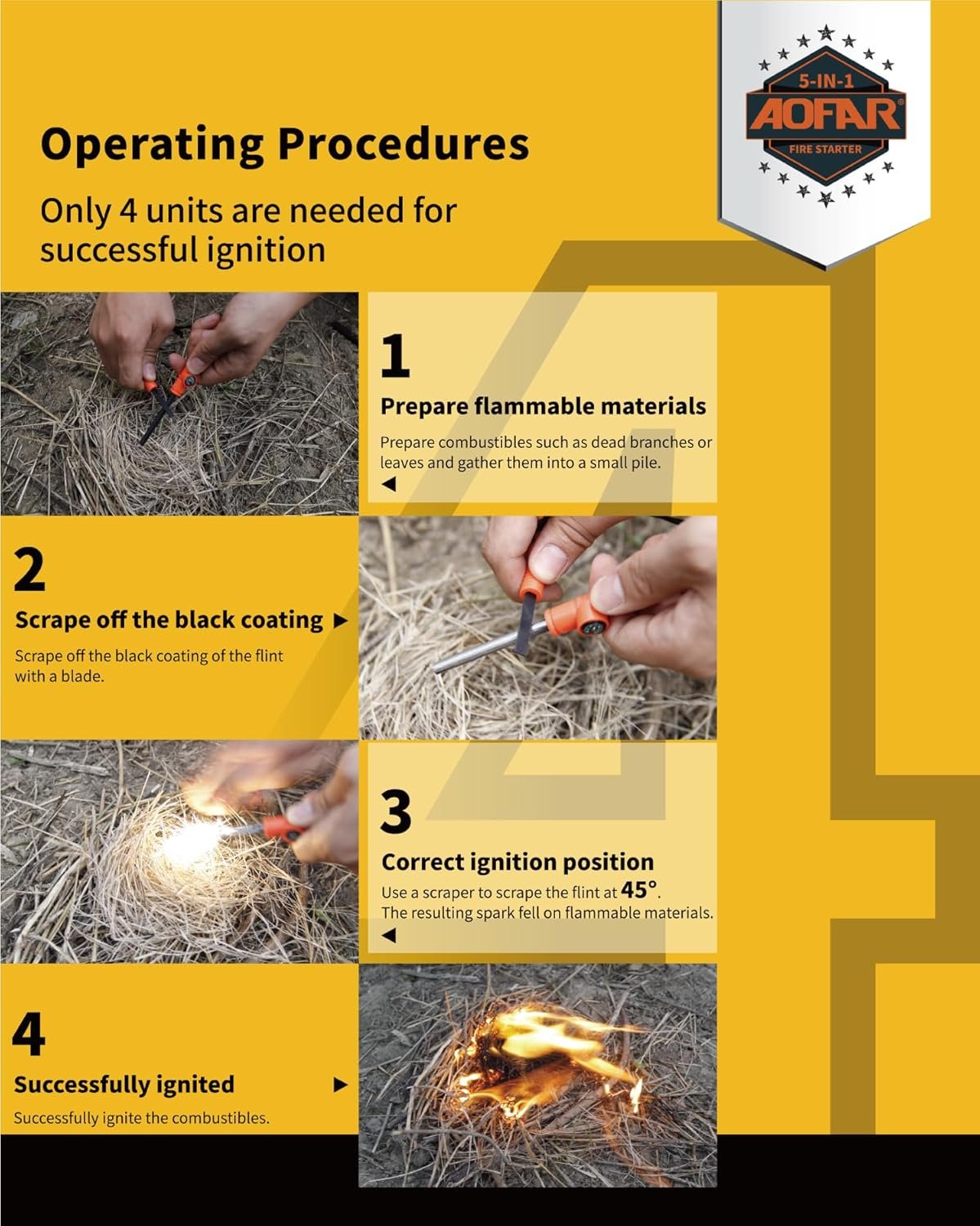 AOFAR Fire Starter AF-381/AF-381plus Fire Steel with Paracord and Whistle for Camping, Hiking, Hunting, Backpacking, Boating, Emergency Rescue…