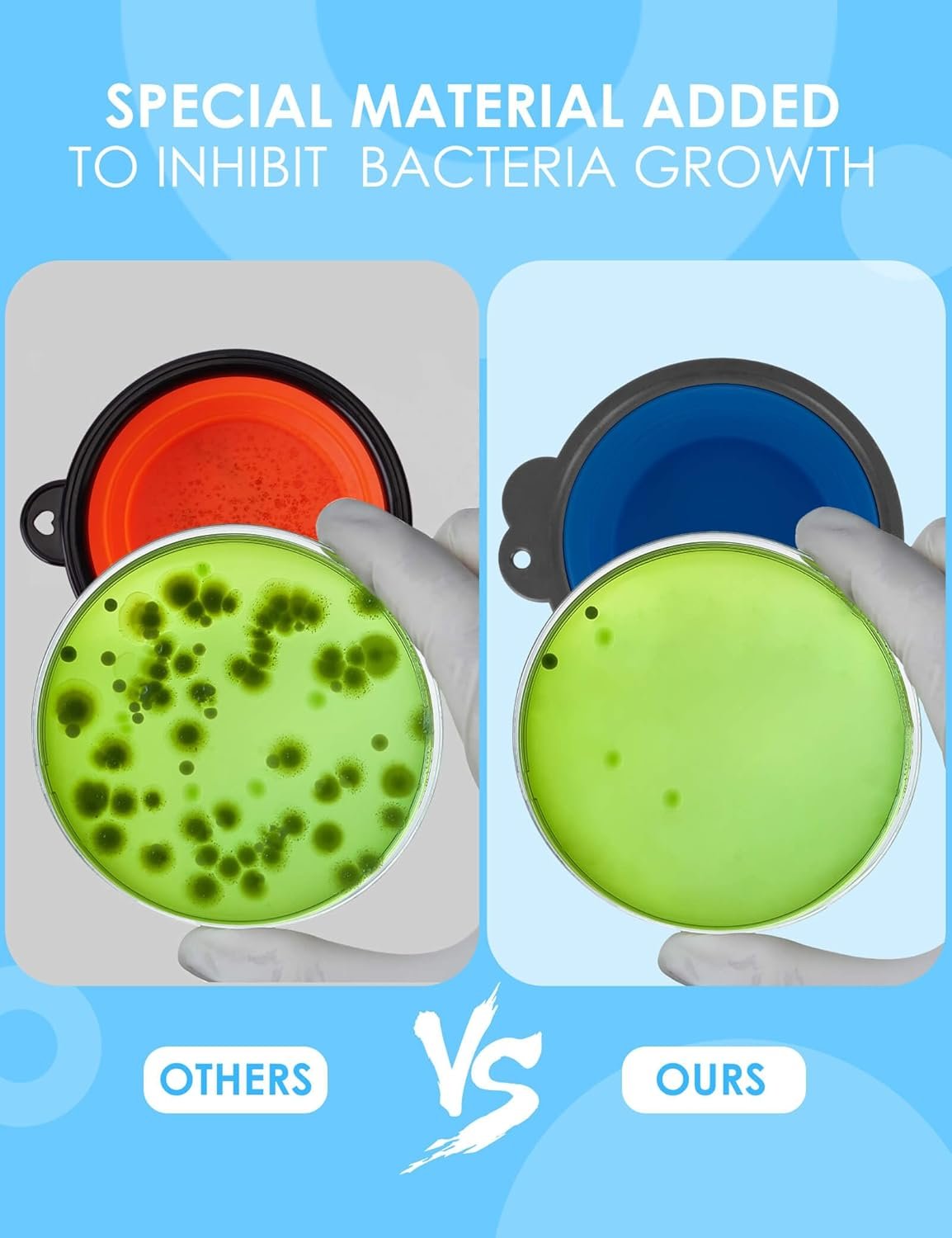 【Safety First】Crafted from high-quality, food-grade silicone with a tempting beef flavor, our dog foldable bowl eliminates the typical silicone smell that dogs dislike. BPA-free, dishwasher safe, it’s not just convenient but also healthy for your pet.