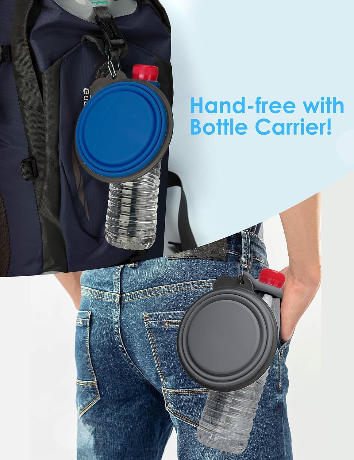【Perfect for On-the-Go】These travel bowls are a breeze to pack since they collapse effortlessly. Clip them to a backpack or water bottle – ideal for outgoing to the park, hiking, driving, or any social activities with your furry friend.