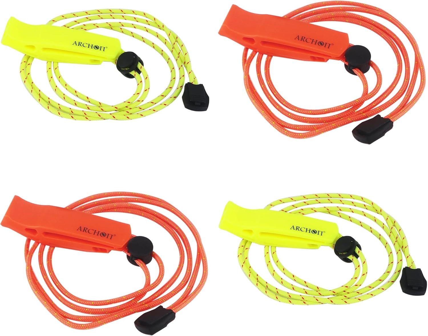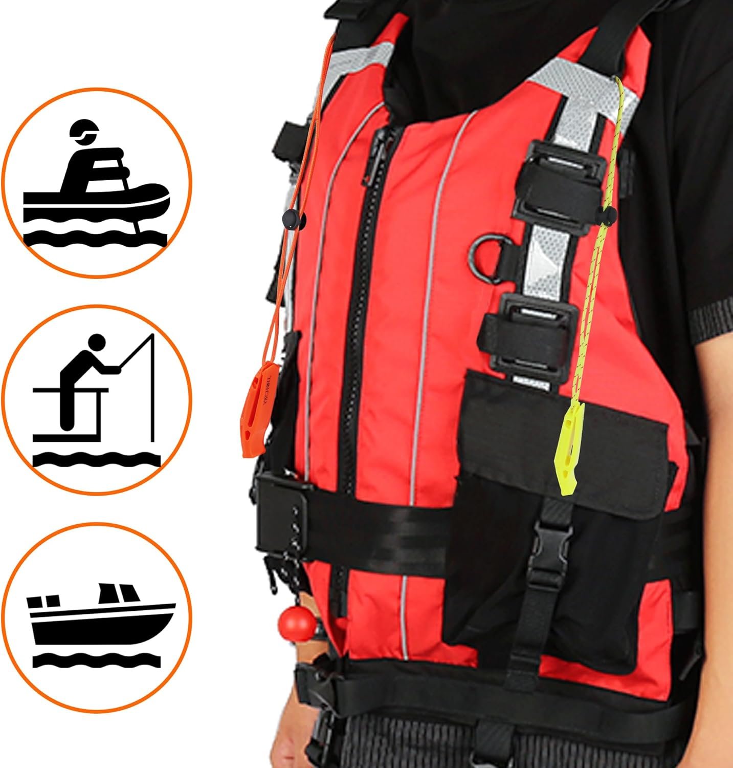 VIBRANT COLOR: It made of plastic to avoid any potential rusting or allergies to metals that might occur.Very vibrant color is easy to recognize. This survival is lightweight and have long strap string, can hung on your neck or tie on to anything including life jacket, boat, belt loop and backpack. They are more accessible than phone to contact each other when you are camping and hiking, in case your members were to get lost or have some other emergency.