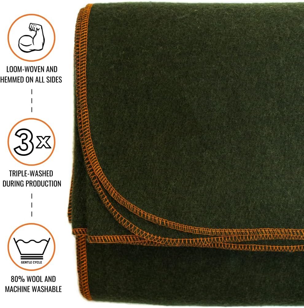 Arcturus Military Wool Blanket – Warm, Thick, Washable – Great for Outdoors, Camping, Stadium Blanket, Picnics, Travel – Car & Bushcraft Survival Kits, Large 64in x 88in 4.5 lb