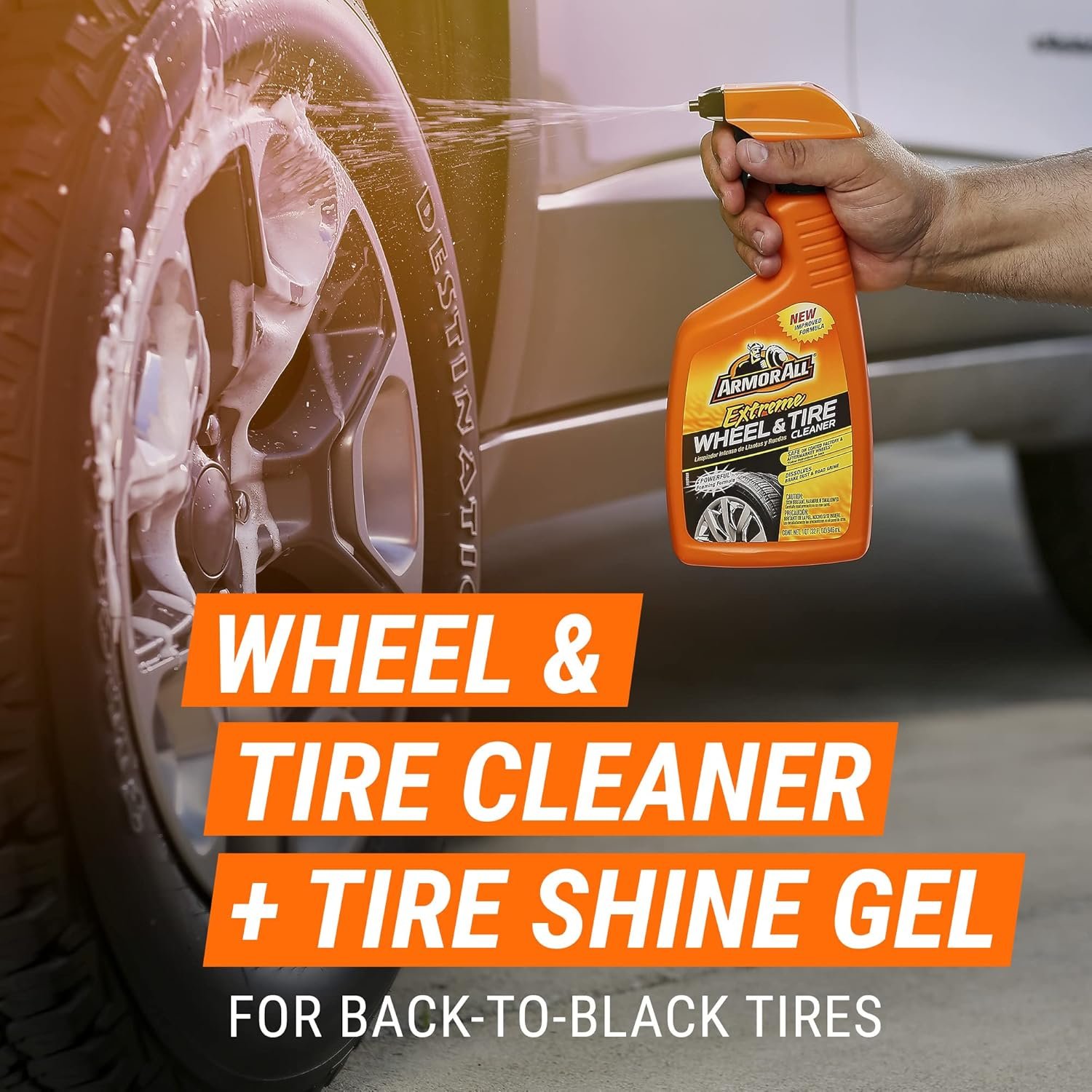 [Clean Tires]: The Armor All Tire Shine delivers intense, mirror-like shine while the Armor All Extreme Tire and Wheel Cleaner attacks grease, road grime and brake dust