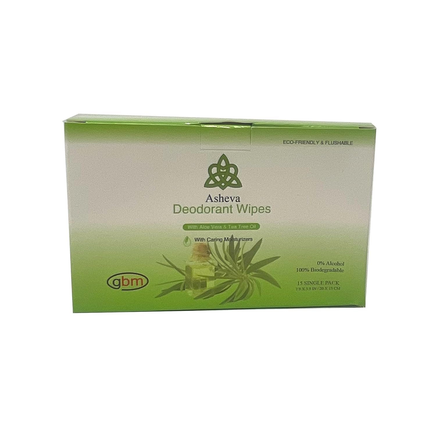 Asheva – Individually Packaged Deodorant Wipes – Box of 15 Wipes (Tea Tree)