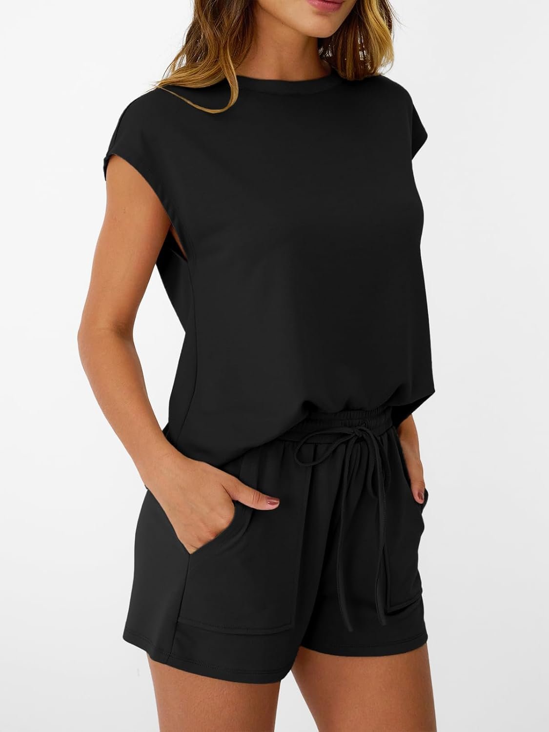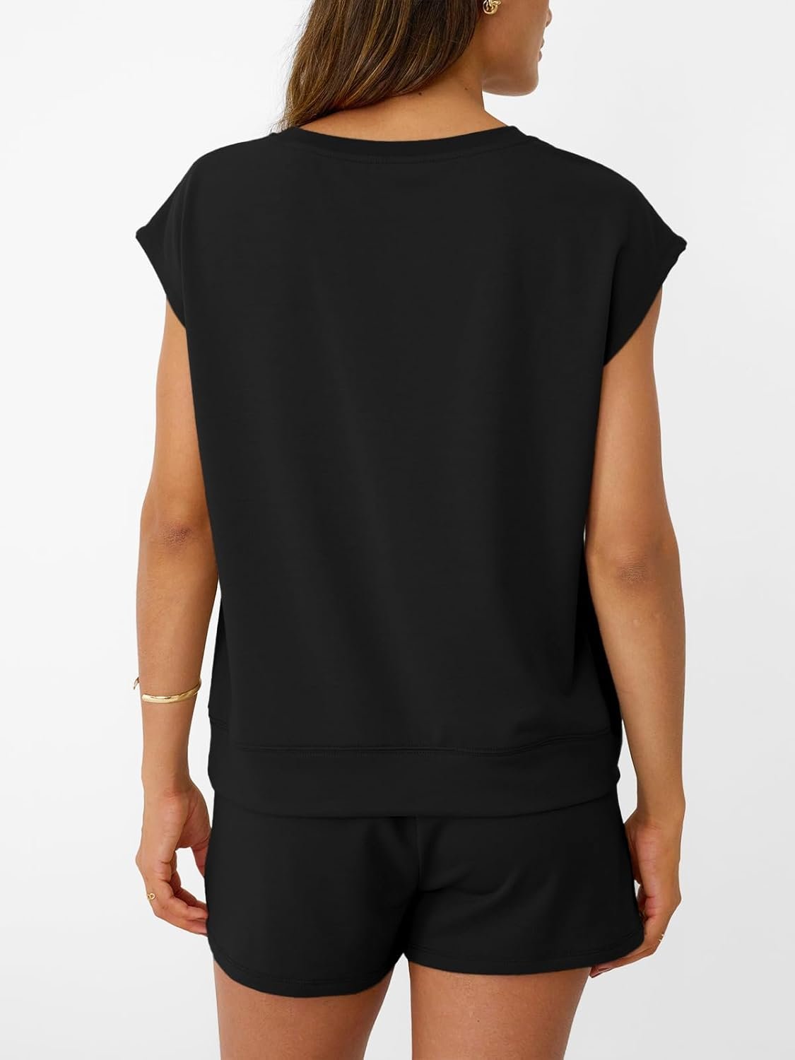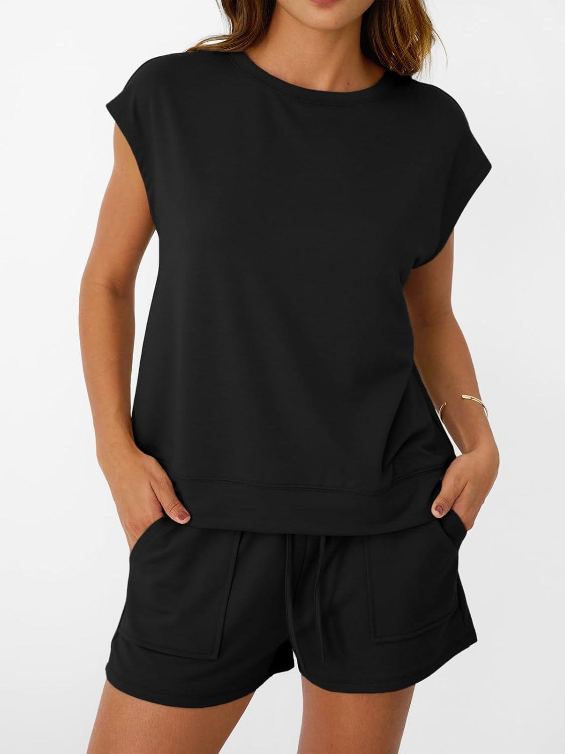 Be the first to review “AUTOMET Womens Crew Neck Two Piece short Sets Cap Sleeve Drawstring Summer Sweatsuit with Pocket” Cancel reply
