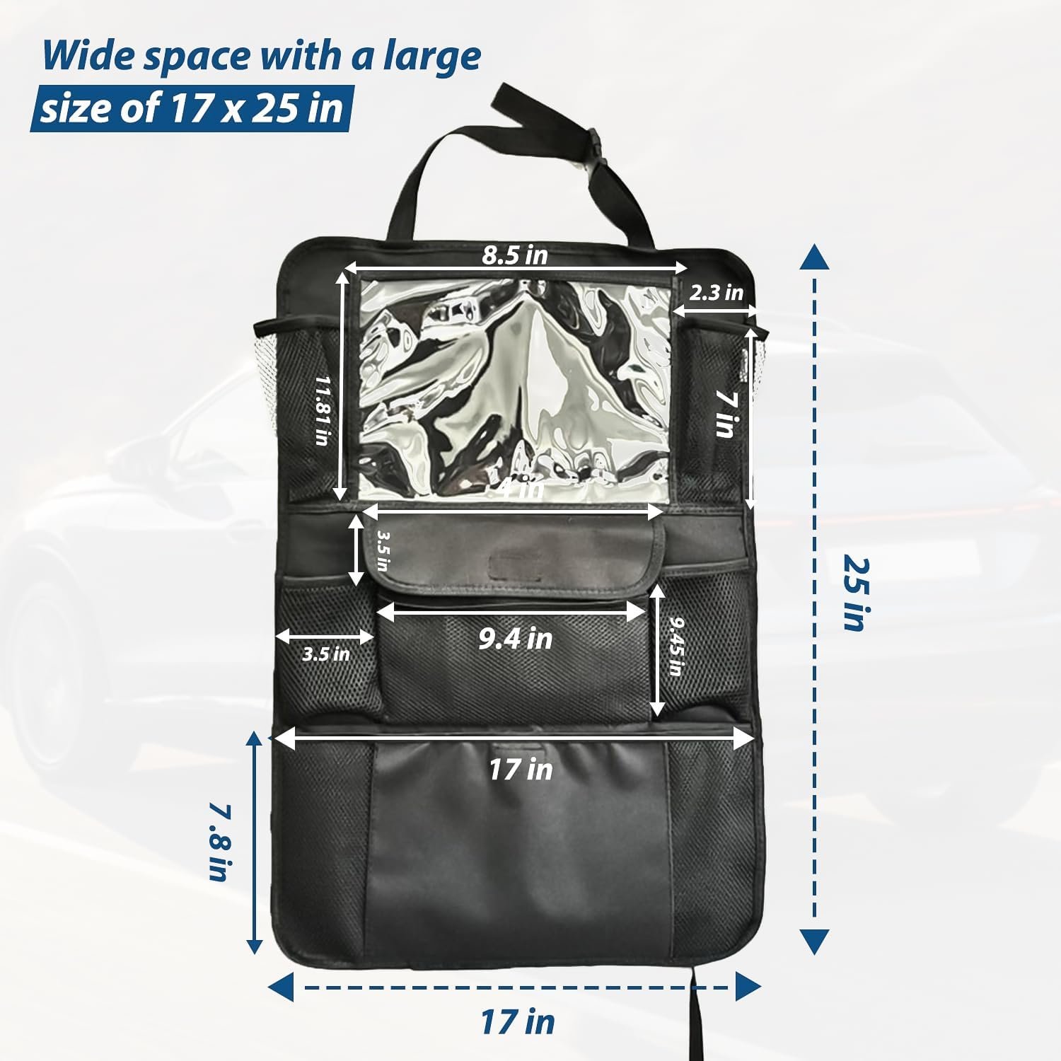 Easy to Install: With adjustable straps and a dirt-resistant surface, our car seat back organizer provides convenience. Car seat storage simply wipe with a wet tissue for a fresh and look like new.