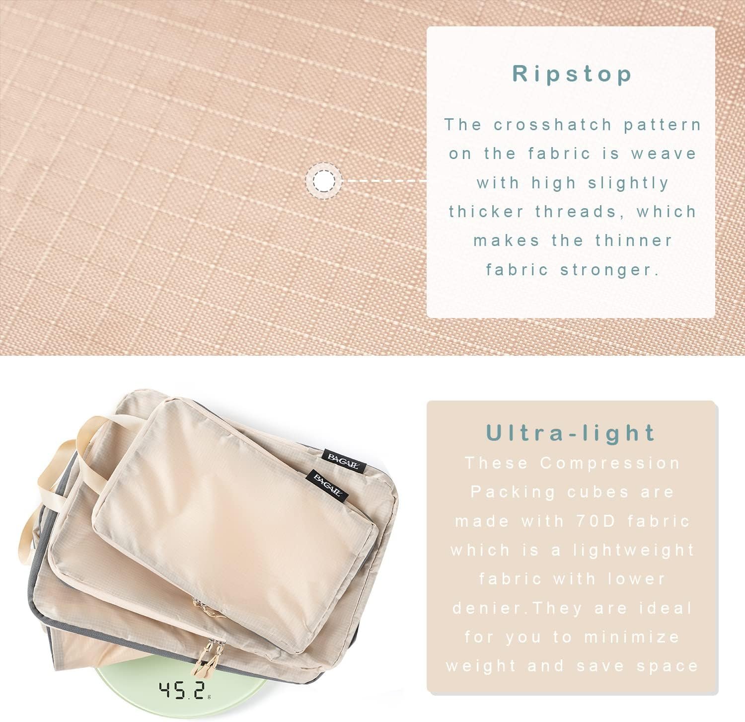 BAGAIL 4 Set/6 Set Ultralight Compression Packing Cubes Packing Organizer for Travel Accessories Luggage Suitcase Backpack(70D 6Set Beige)