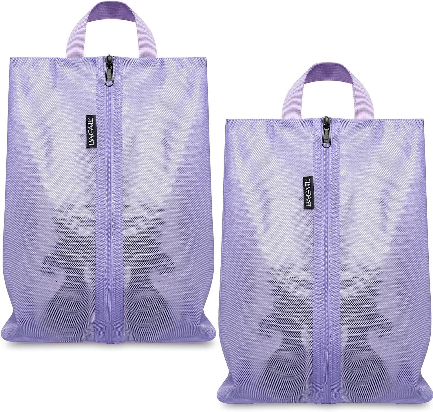 Bagail Shoe Bags for Travel,2 Set Shoe Bag for Storage in Closet,Transparent Shoe Packing Organizers with YKK Zipper (L 17″x10″x5″, Lavender 2pcs)