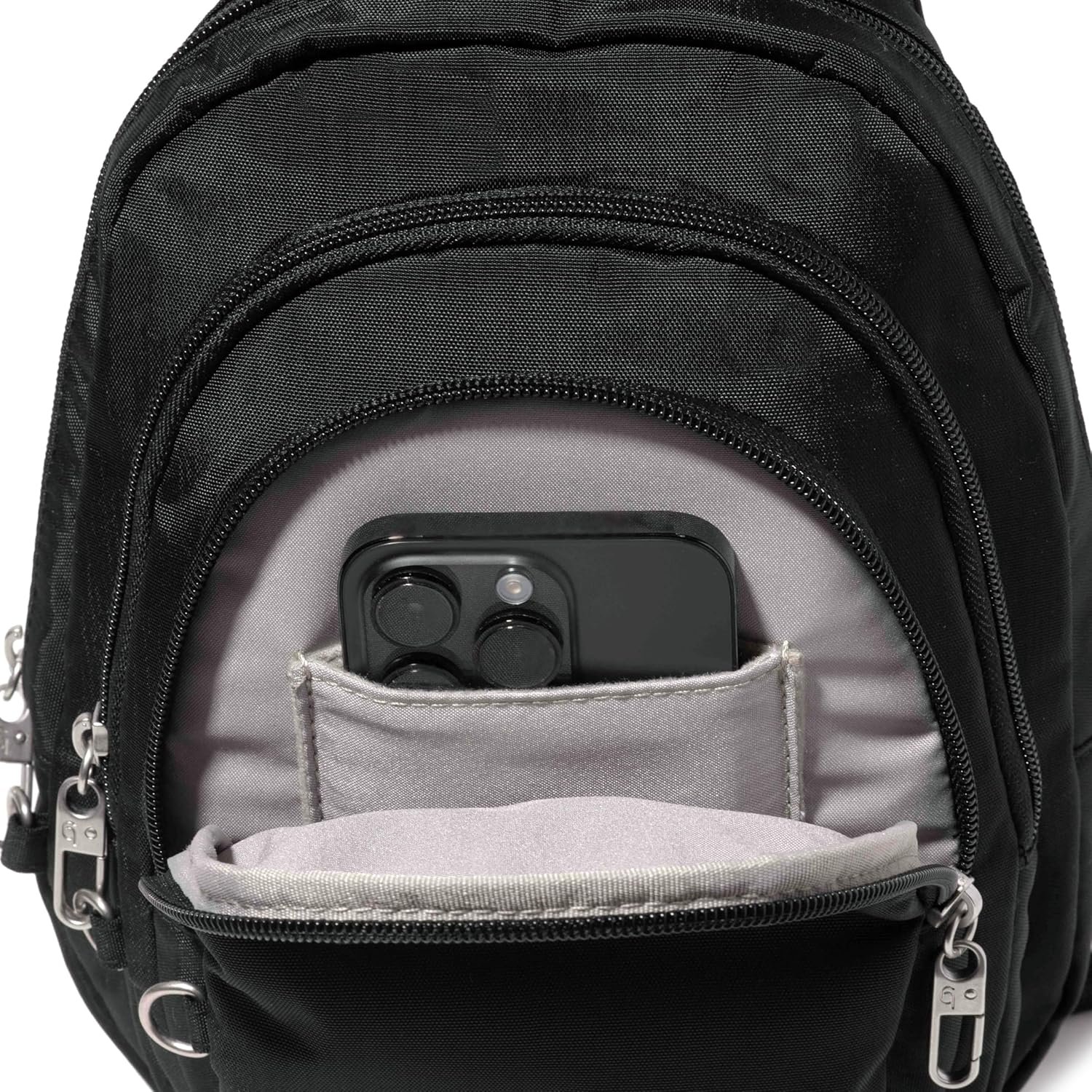 Baggallini Securtex® Anti-Theft Triple Zip Sling – Travel Backpack Sling Bag Crossbody – RFID Wallet Locking Zipper