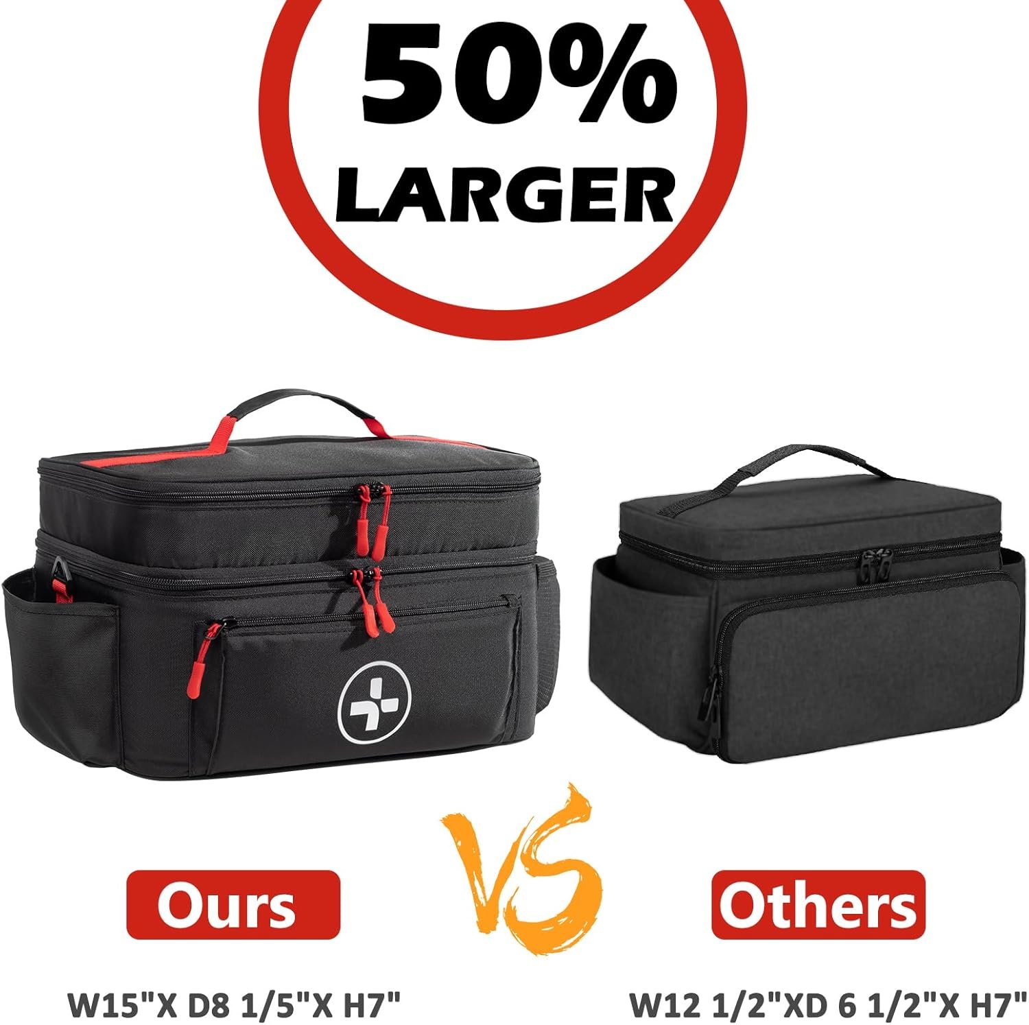 💊【Double-Layer Design】: The bag features a double-layer design that provides ample space to store and organize daily medicines, bandaids, and medication supplies.