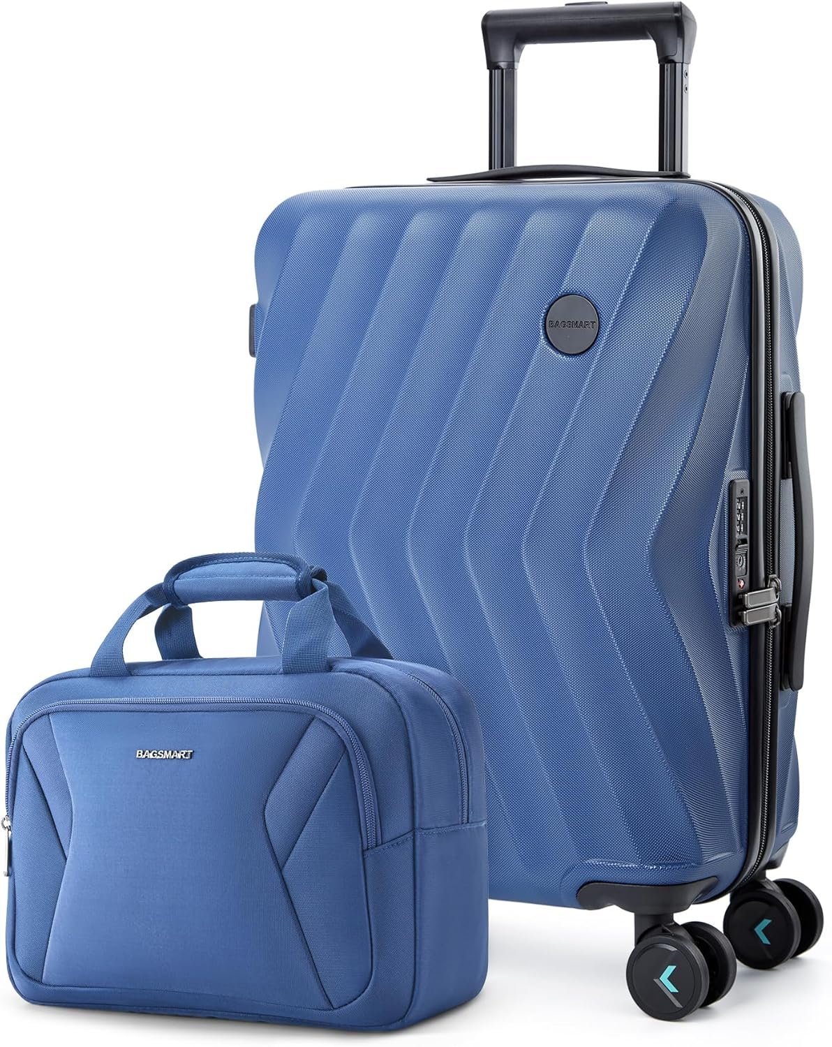 BAGSMART 2 Piece Carry On Luggage Set, PC Hardside Suitcase Airline Approved, 20 Inch Spinner Wheels Travel Luggage Hard Shell with Duffle Bag for Men Women, Blue
