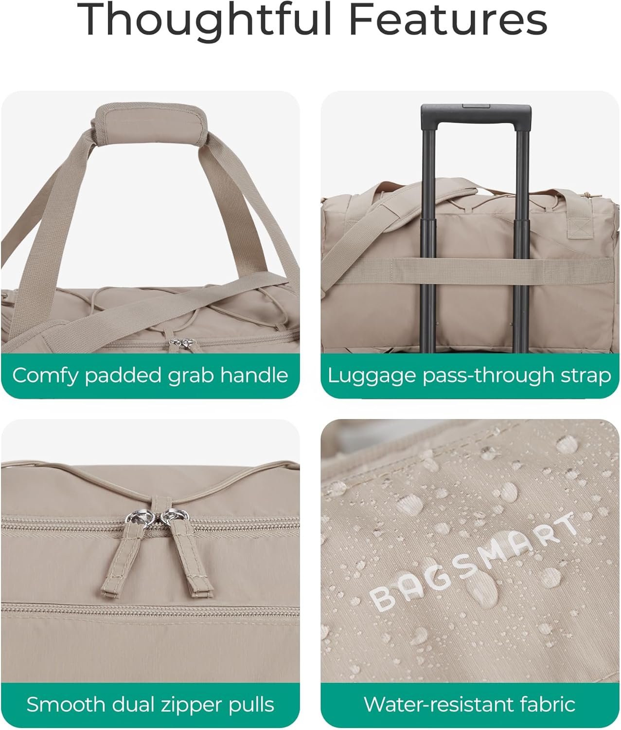 User-Centric Design Details: At BAGSMART, we believe in making every detail count! Crafted from water-resistant fabric, this gym bag comes equipped with cushioned handles, ultra-smooth dual zippers, a trolley sleeve, and an elastic strap for towel storage. Each feature is thoughtfully designed with you in mind—ensuring privacy for your personal items while enhancing your overall experience
