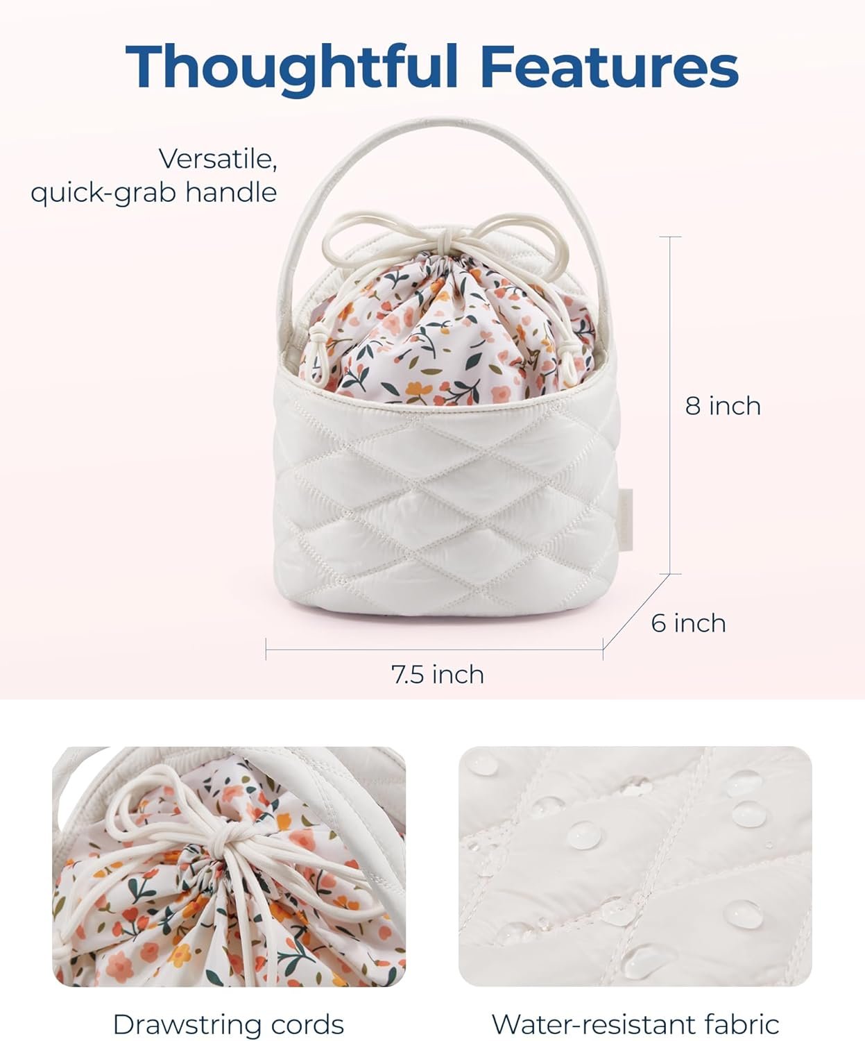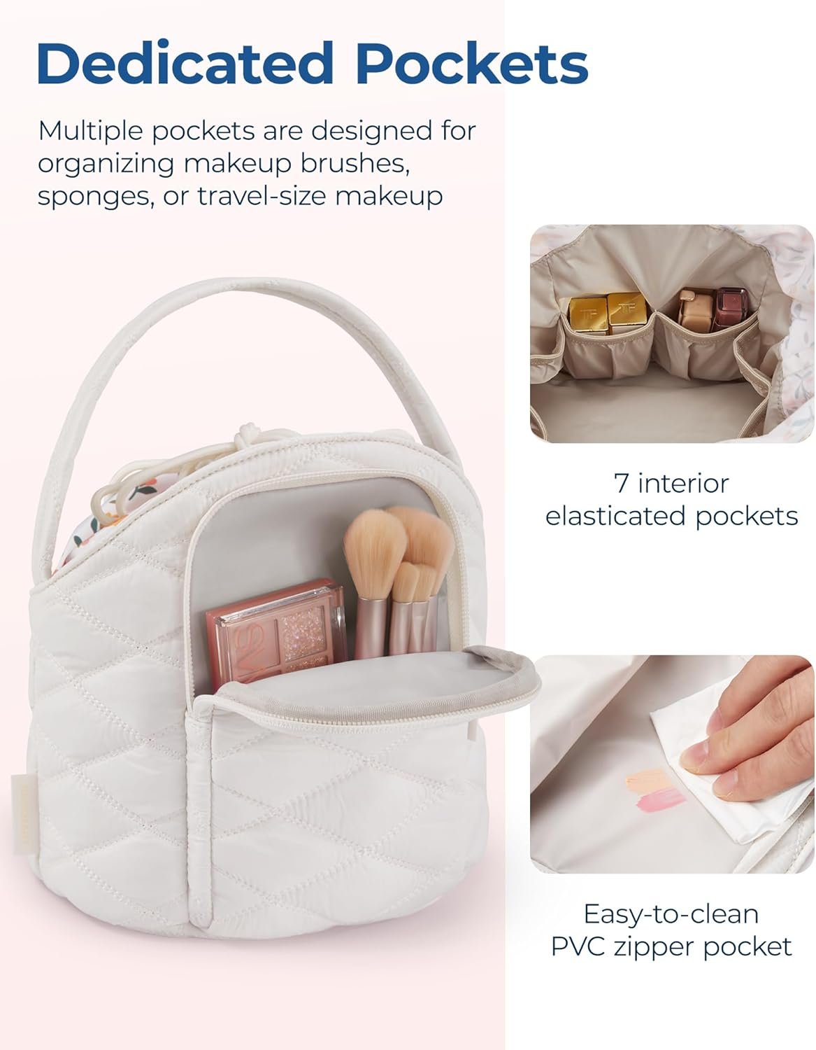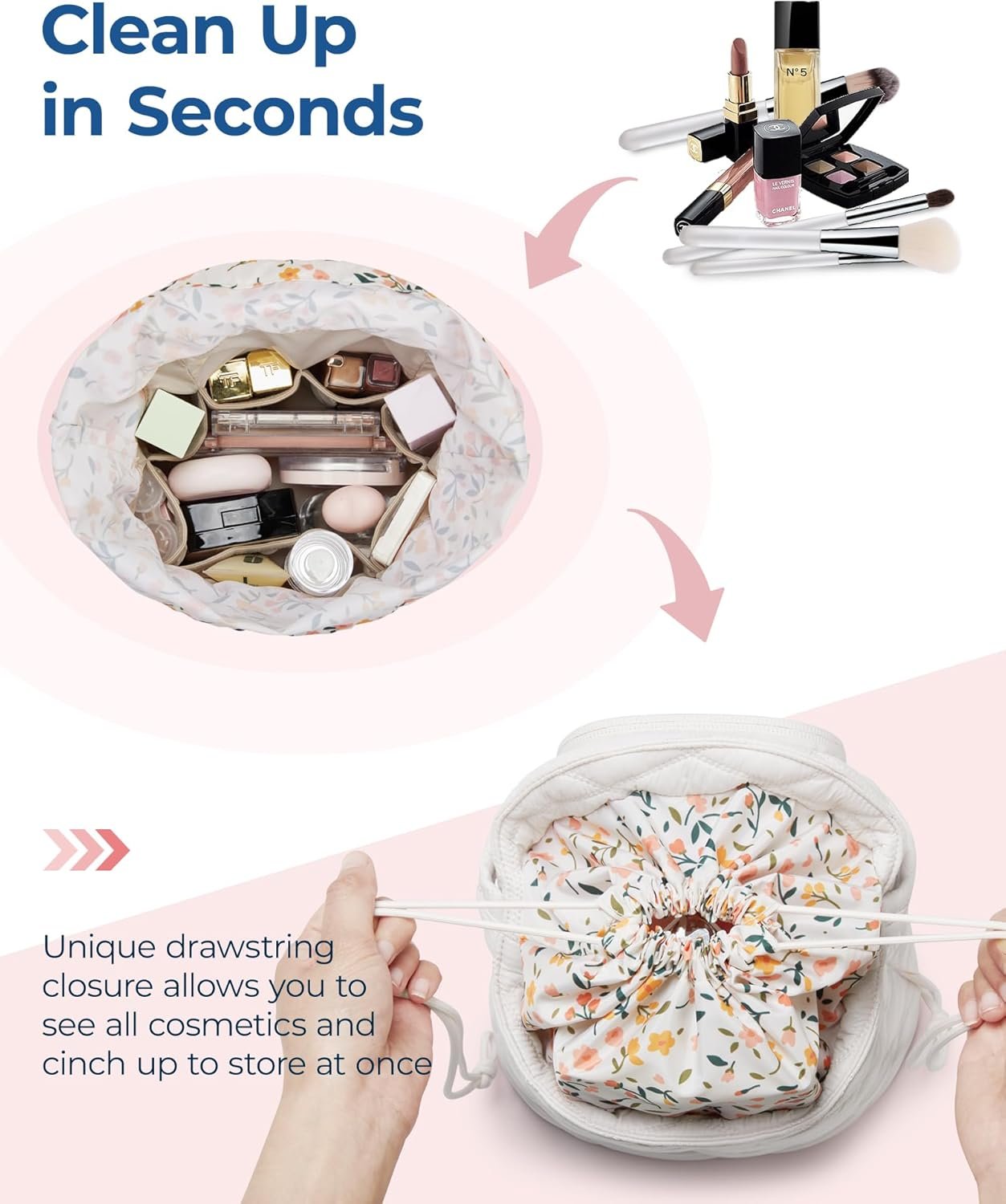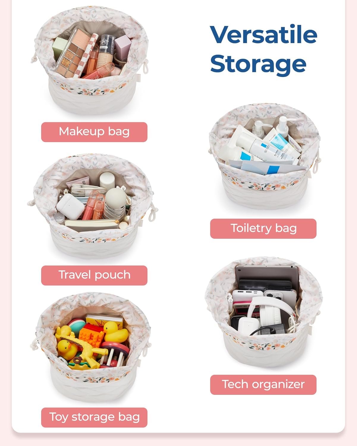 【Innovative Drawstring Design】 Discover convenience with our unique drawstring design that provides easy access to your makeup. Simply pull the drawstring to pack and unpack effortlessly, keeping your cosmetics visible and neatly organized in an instant.