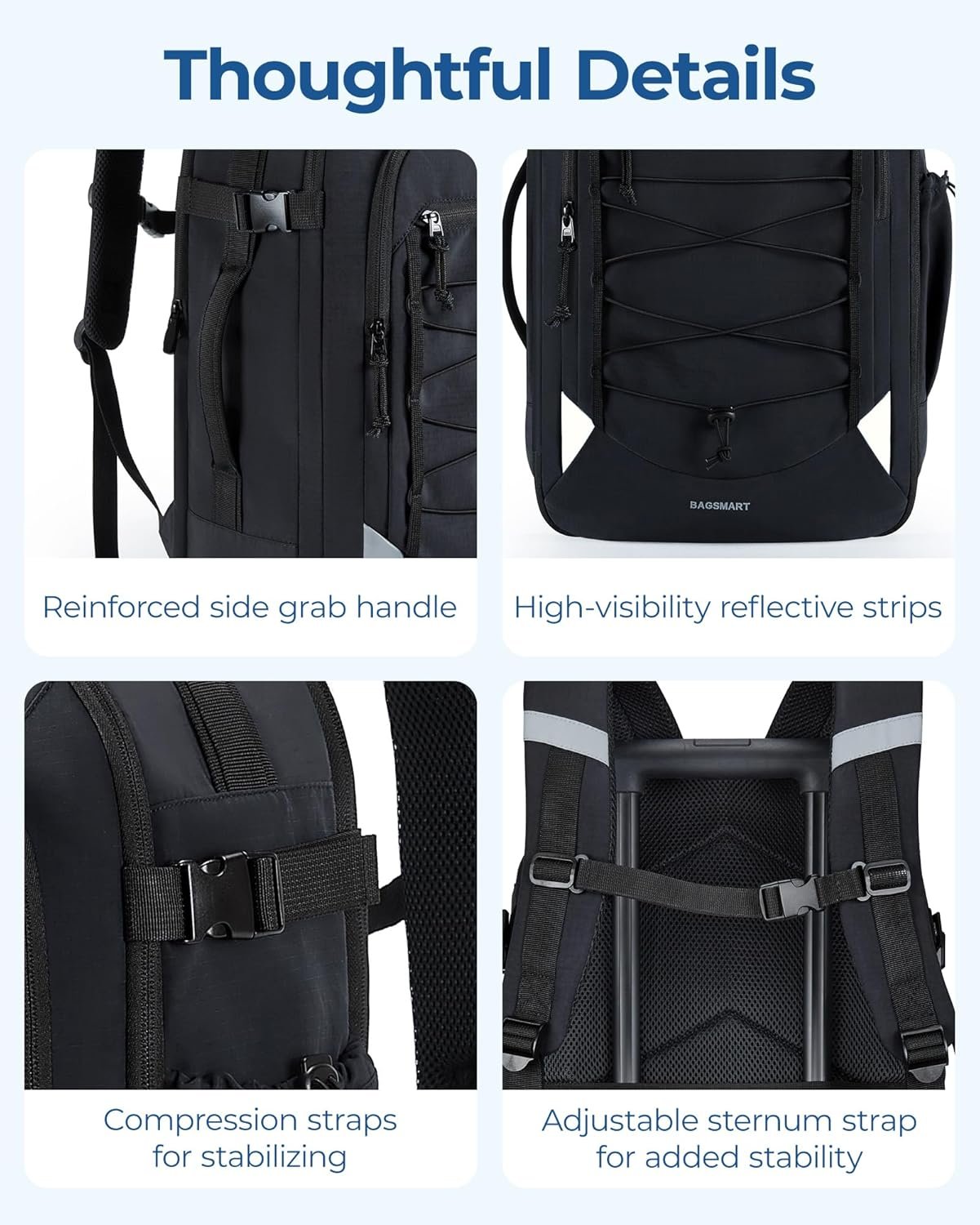 BAGSMART Carry On Travel Backpack, 17.3 Inch Large Travel backpack Carry On Flight Approved, Personal Item Backpack Travel Bag With Shoe Bag, 30L Water Resistant Casual Daypack, Black