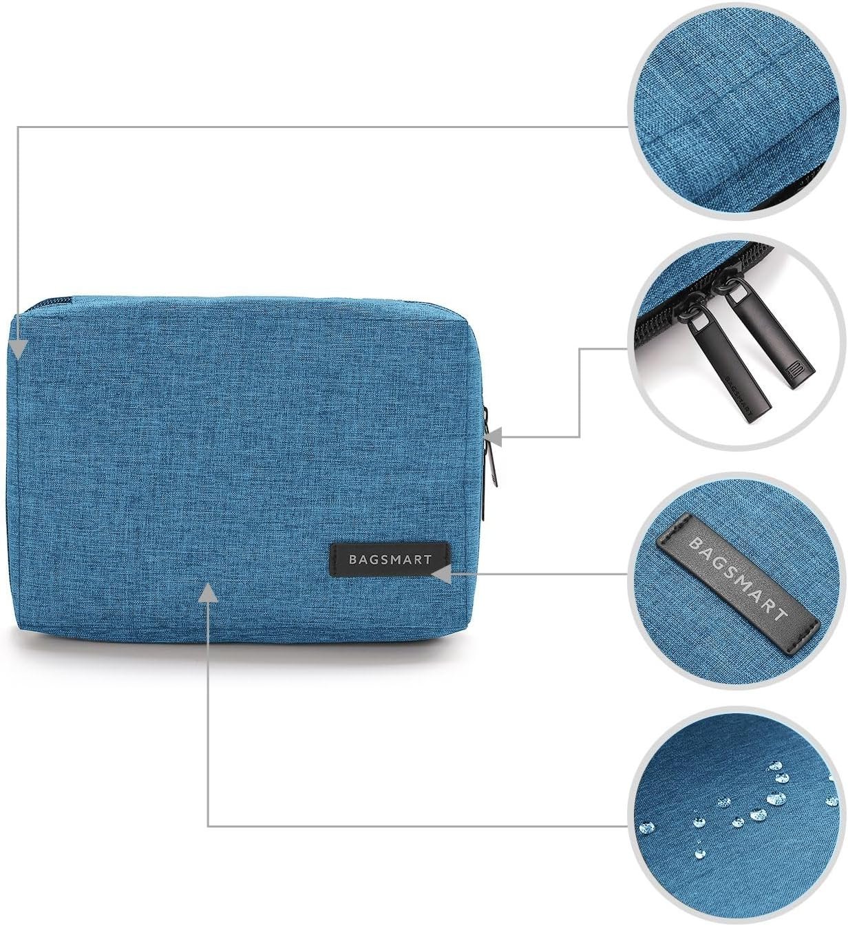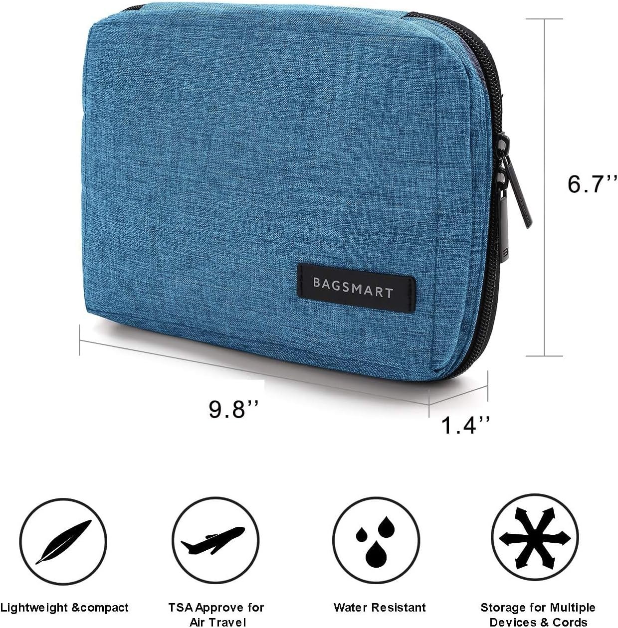 BAGSMART Electronics Organizer Travel Case, Small Travel Cord Organizer Bag for Travel Essentials, Travel Tech Organizer as Travel Accessories for Men Women, Cable Organizer for Phone, SD Card, Blue