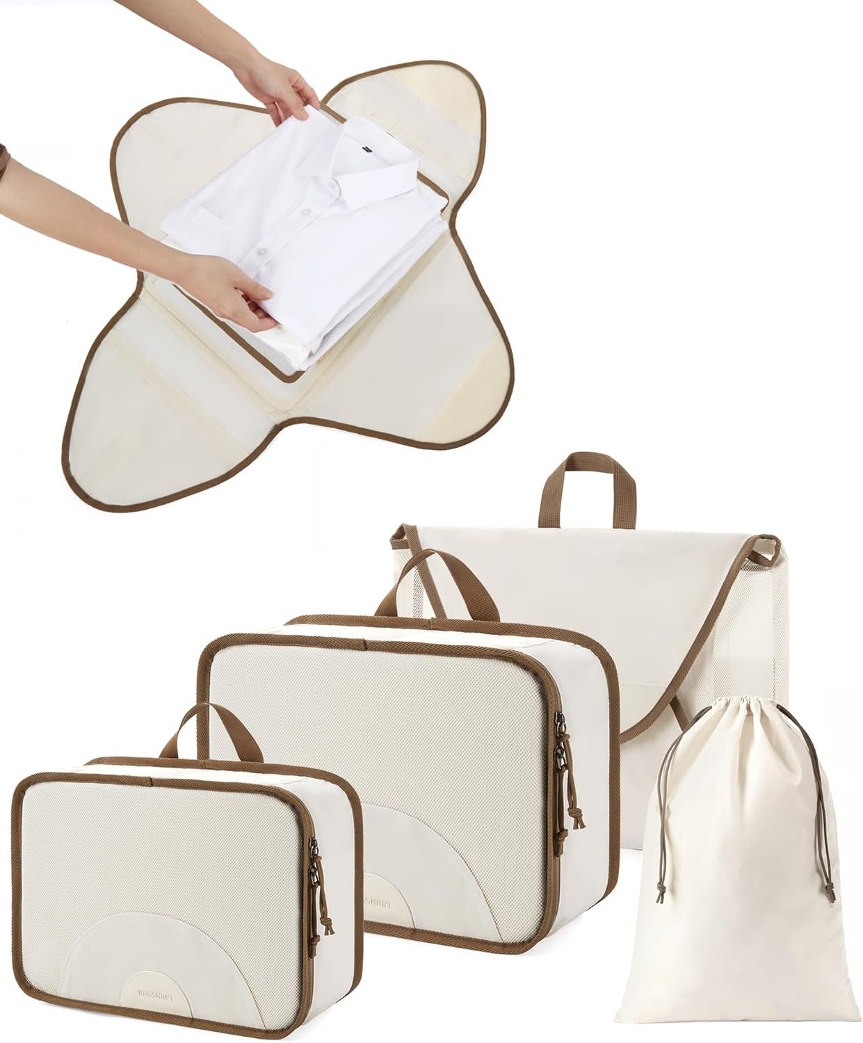 BAGSMART Garment Folder Packing Cubes for Travel, 4 Set Lightweight Travel Cubes for Wrinkle Free, Durable Suitcase Organizers Bag Set for Travel Essentials White Opal