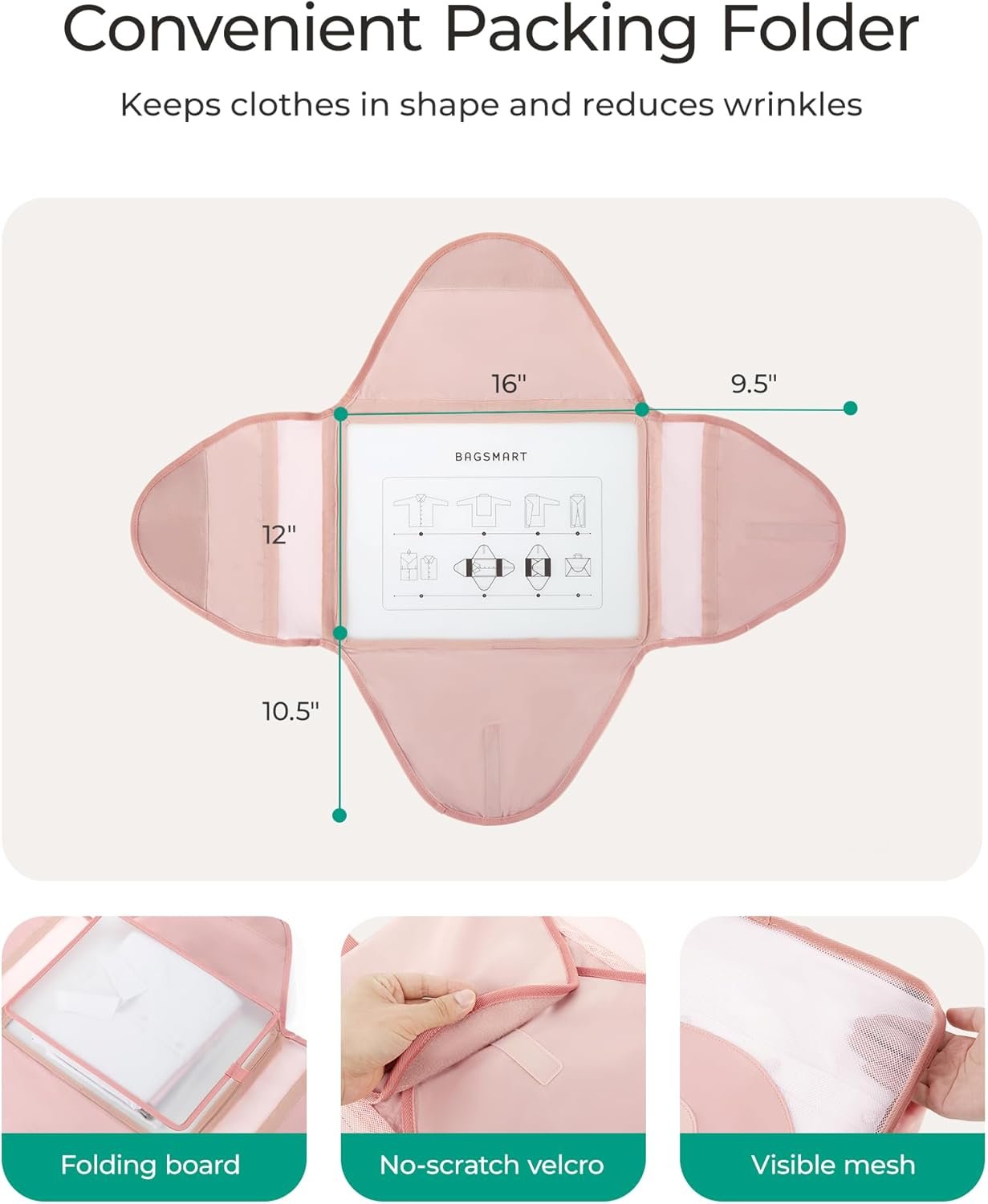 Wrinkle-free Packing Folder: Bagsmart travel packing cubes prevent shirt wrinkles, keeping your professional image intact. Includes a folding board for efficient and neat folding. Ideal for business travelers, ensuring you’re always ready for important occasions