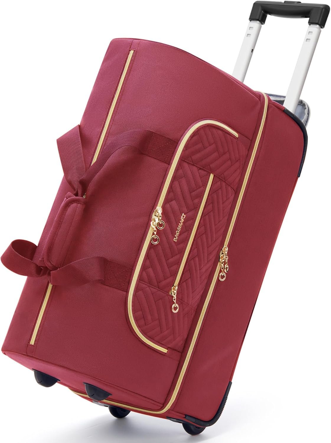 BAGSMART Rolling Duffle Bag with Wheels, 45L Carry-on Luggage Large Travel Bag with Shoes Compartment, Weekender Overnight Bag for Travel, Business Trips(Red)