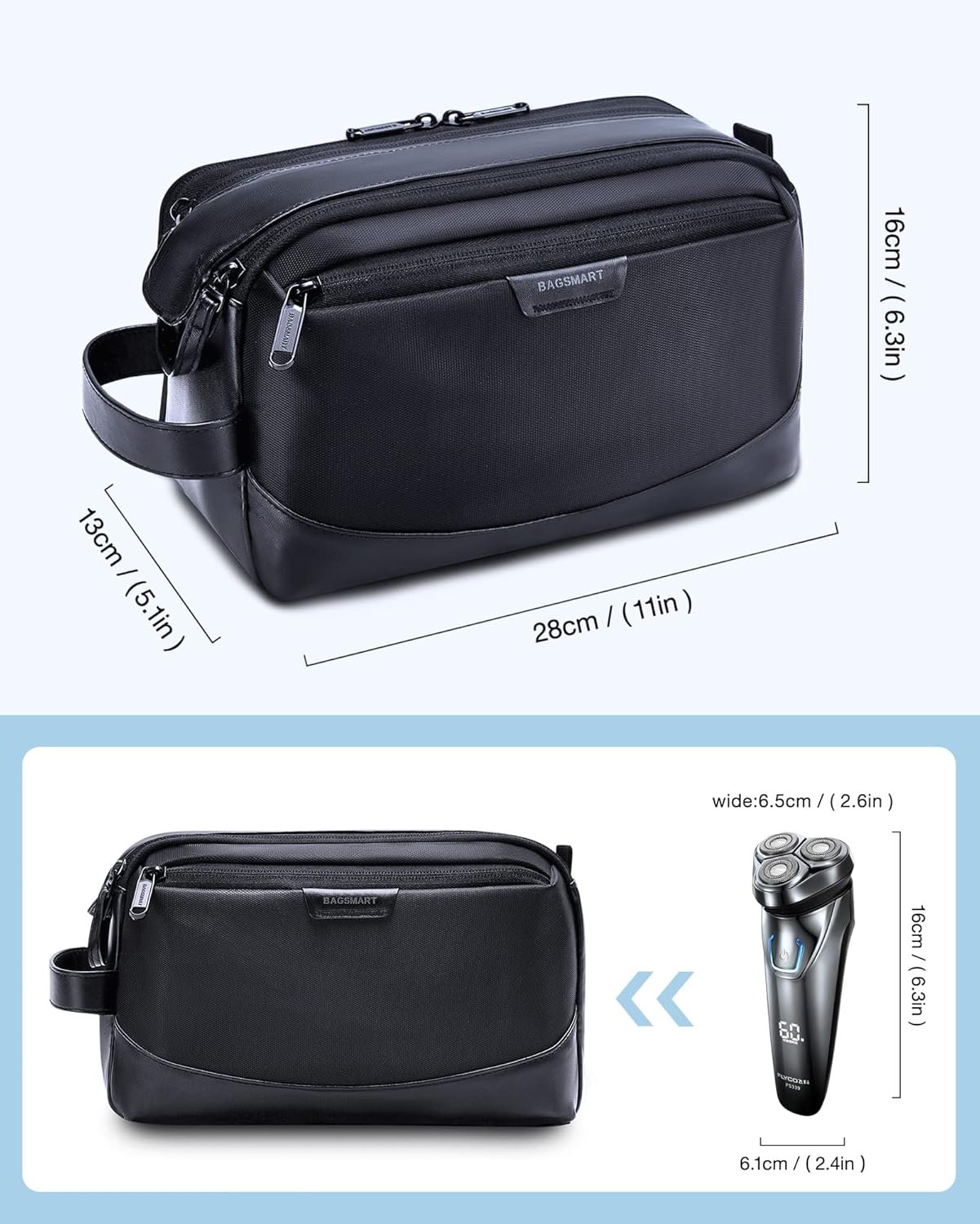 Large Opening: This men shaving bag features a wide opening with a double-zipper design, which allows for easy access to the inside items