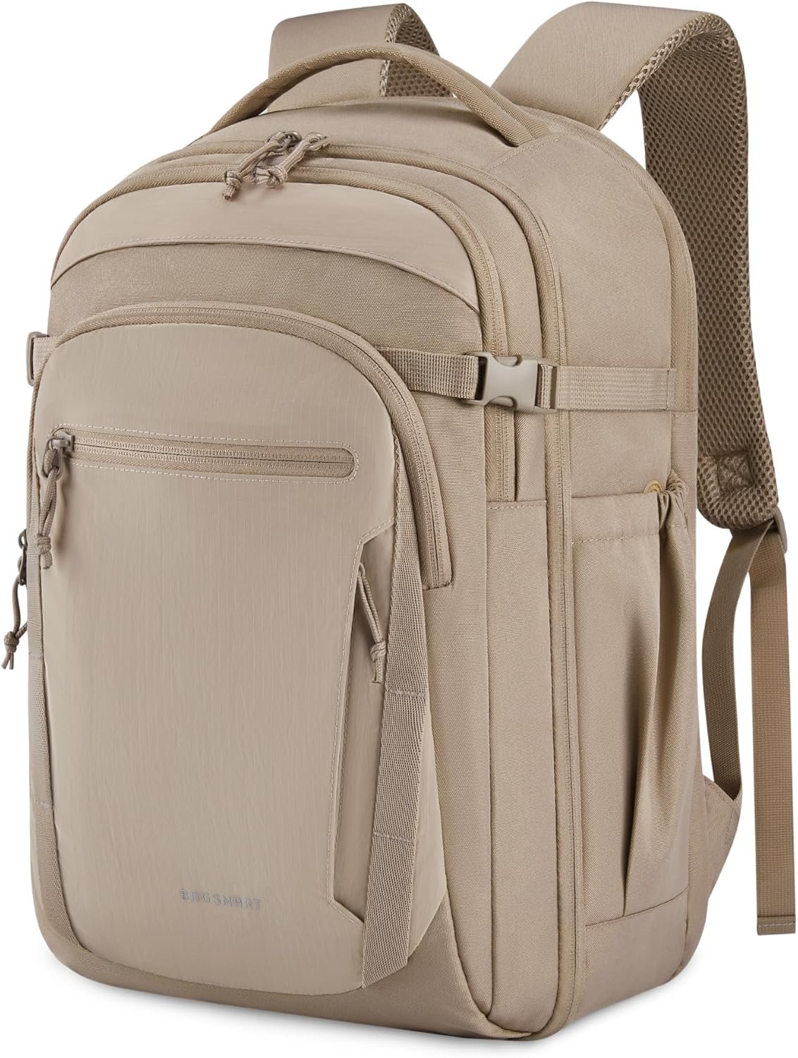 BAGSMART Travel Backpack for Men Women, Carry On Backpack Flight Approved TSA Friendly with USB Charging Hole Lightweight Weekender Bag Casual Daypack 17.3 Inch Laptop Business Work Backpack, Brown