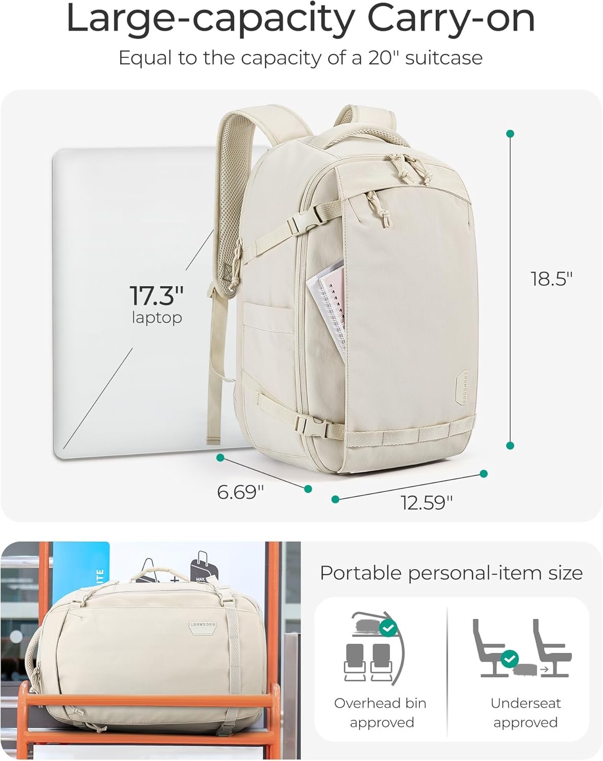 Hassle-Free Travels: Traveling just got simpler! This 30L travel backpack meets all airline regulations for personal item bga, featuring a clever 180% opening design that gives you quick access to your belongings during security checks. The convenient luggage strap secures your bag to your suitcase, making your journey through the airport smoother and stress-free.