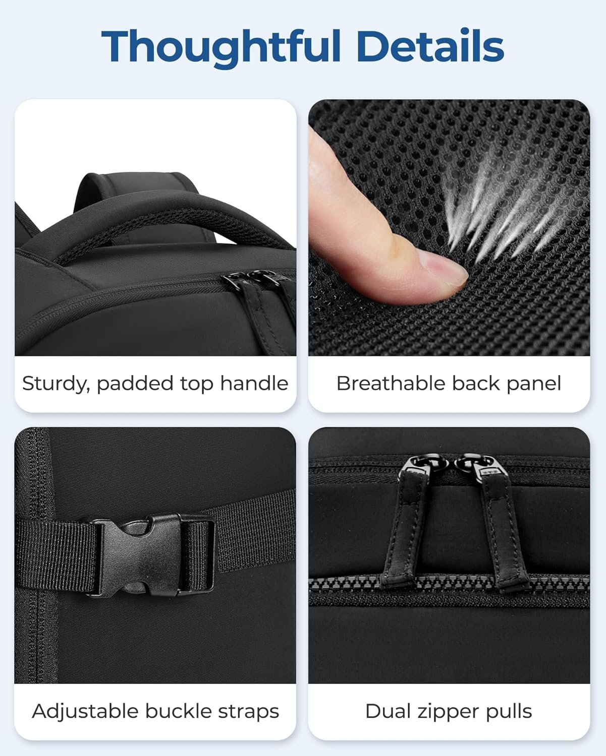 BAGSMART Travel Backpack for Women Men, 30L Carry on Backpack for Airplanes, 17 Inches Backpack for Women, with Shoe Bag & Storage Bag, Backpack Suitcase for Travel, Black