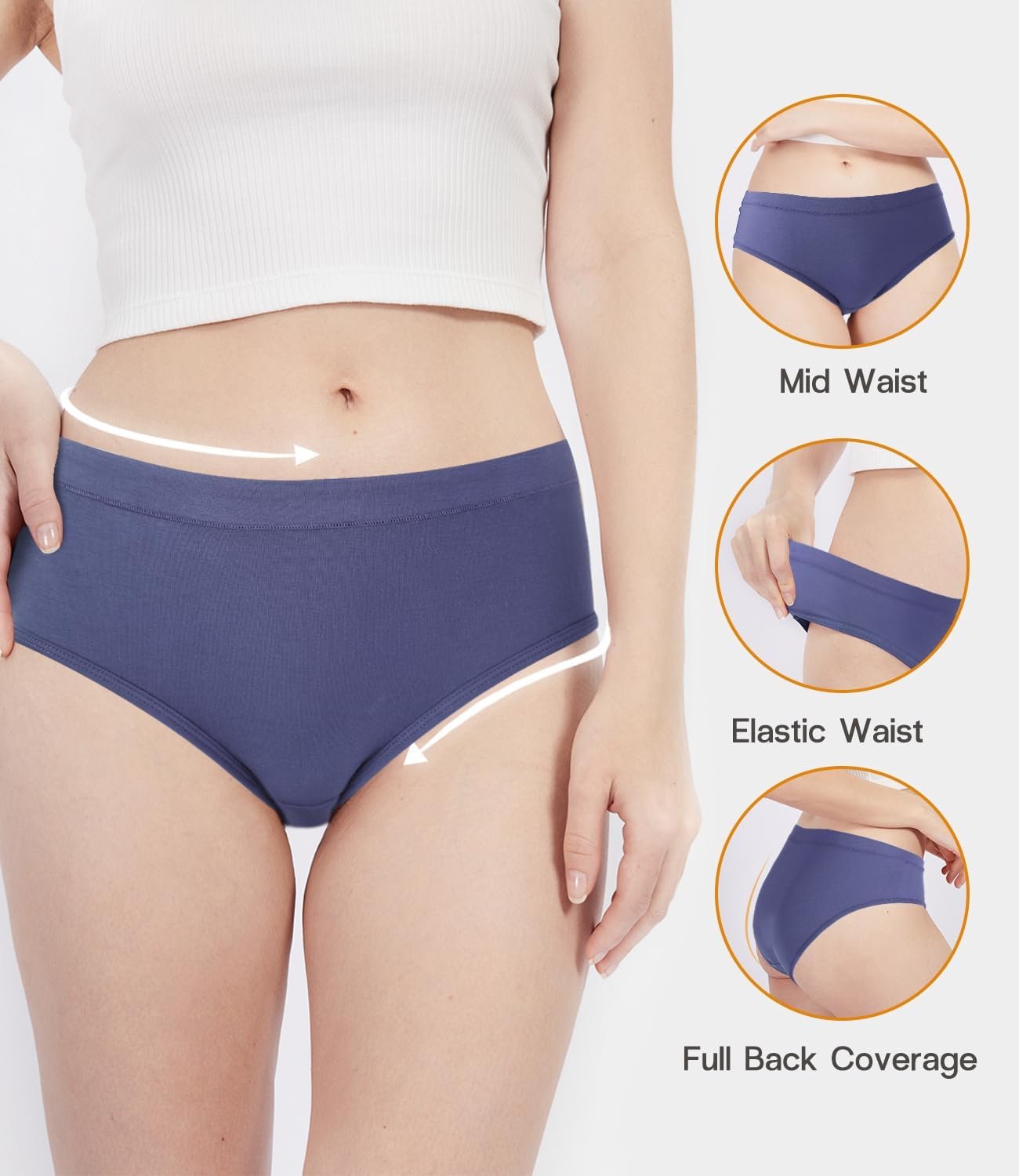 BAMBOO COOL Womens Underwear, Moisture-Wicking Briefs, Soft and Breathable Panties, Mid Waist, 5-Pack