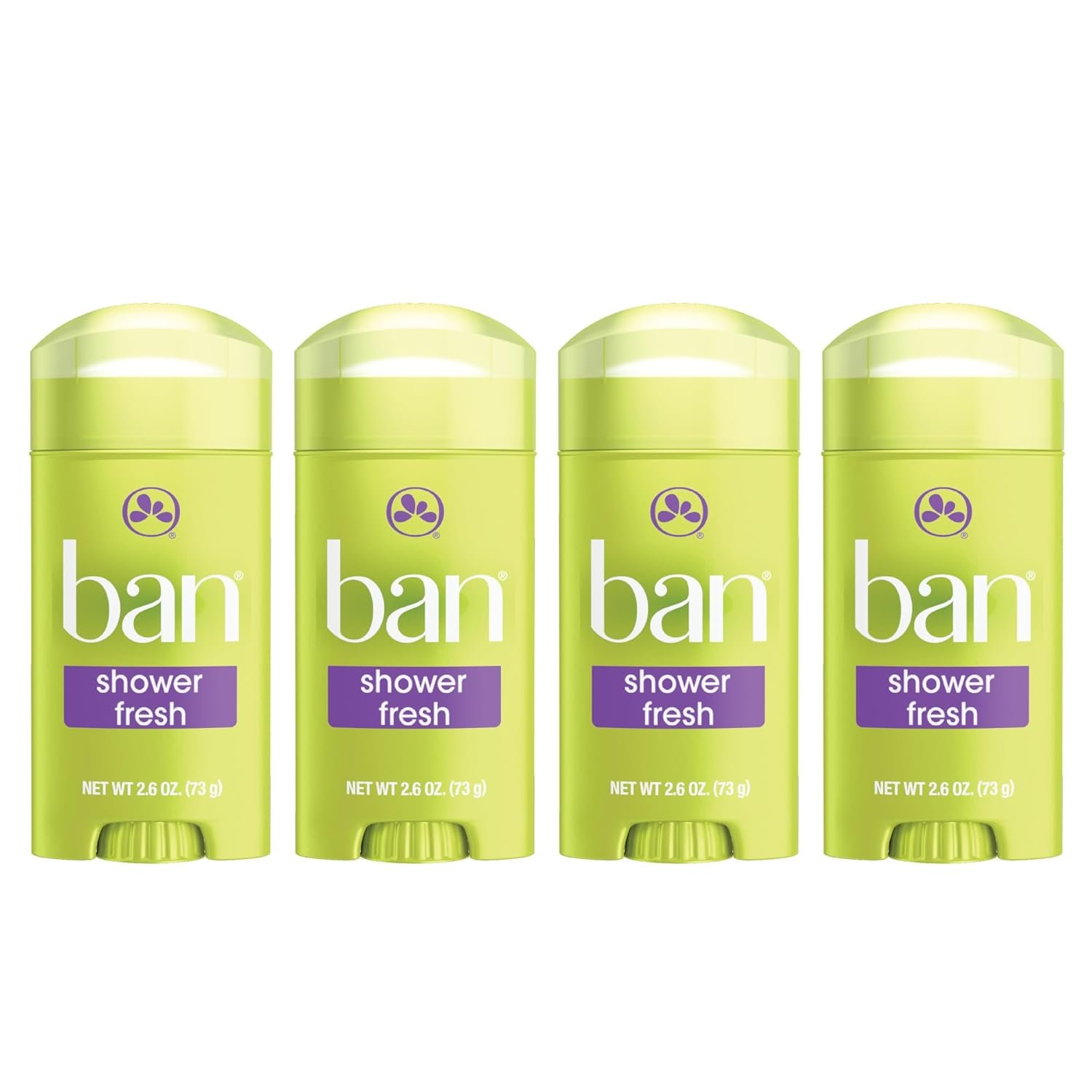 Ban Invisible Solid Antiperspirant Deodorant for Women and Men, 24-Hour Underarm Odor & Sweat Protection, Shower Fresh, 2.6 Oz, Pack of 4
