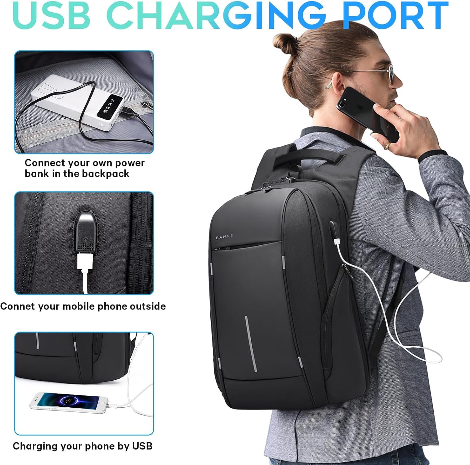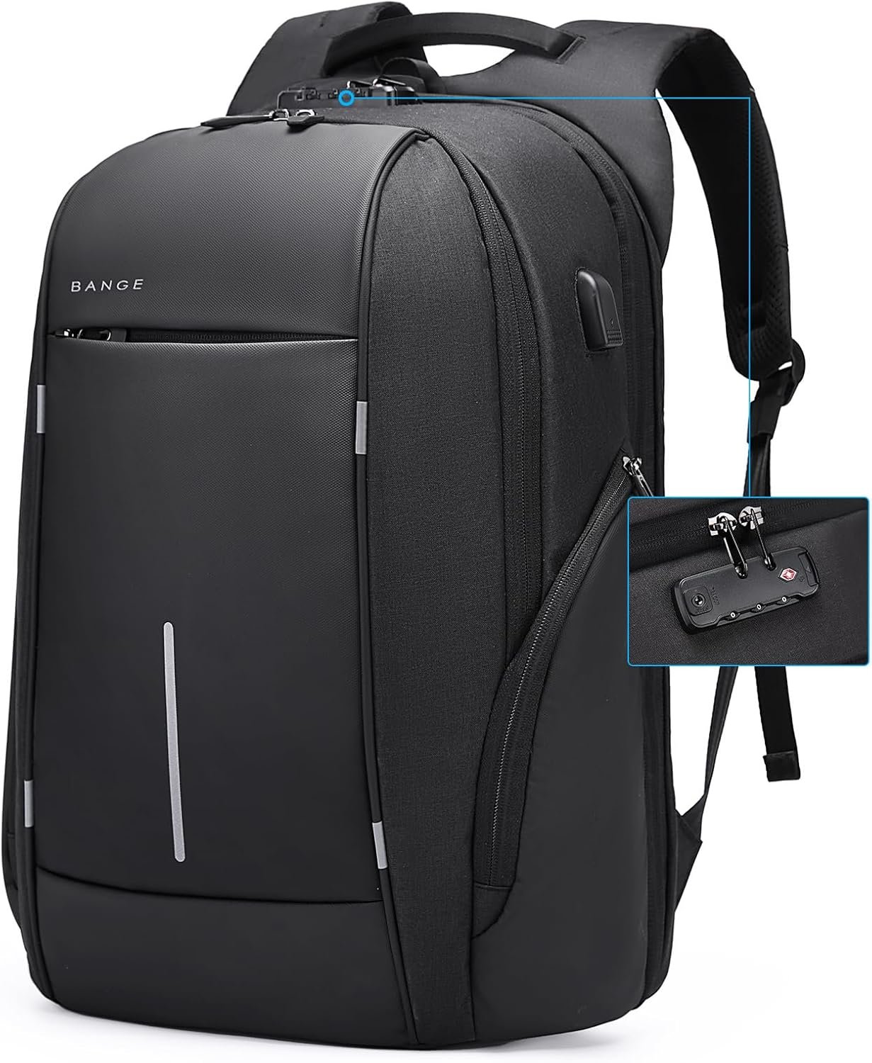 SEPARATED LAPTOP COMPARTMENT FOR 15.6 INCH: Bange Backpack has a separated 15.6 Inch laptop compartment. The thickening sponge can well protect your notebook. The TSA lock can prevent your laptop from stealing.