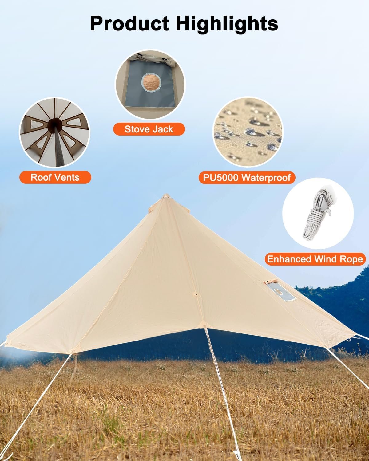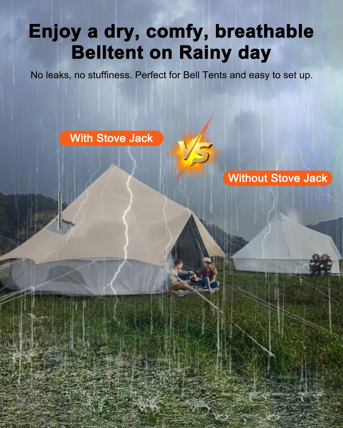 Bell Tent Rain Cover with Stove Jack for Camping,Waterproof,PU5000,Glamping Bell Tent Rain Fly with Stove Jack,4 Season,(Beige, for 13ft(4m) Size)