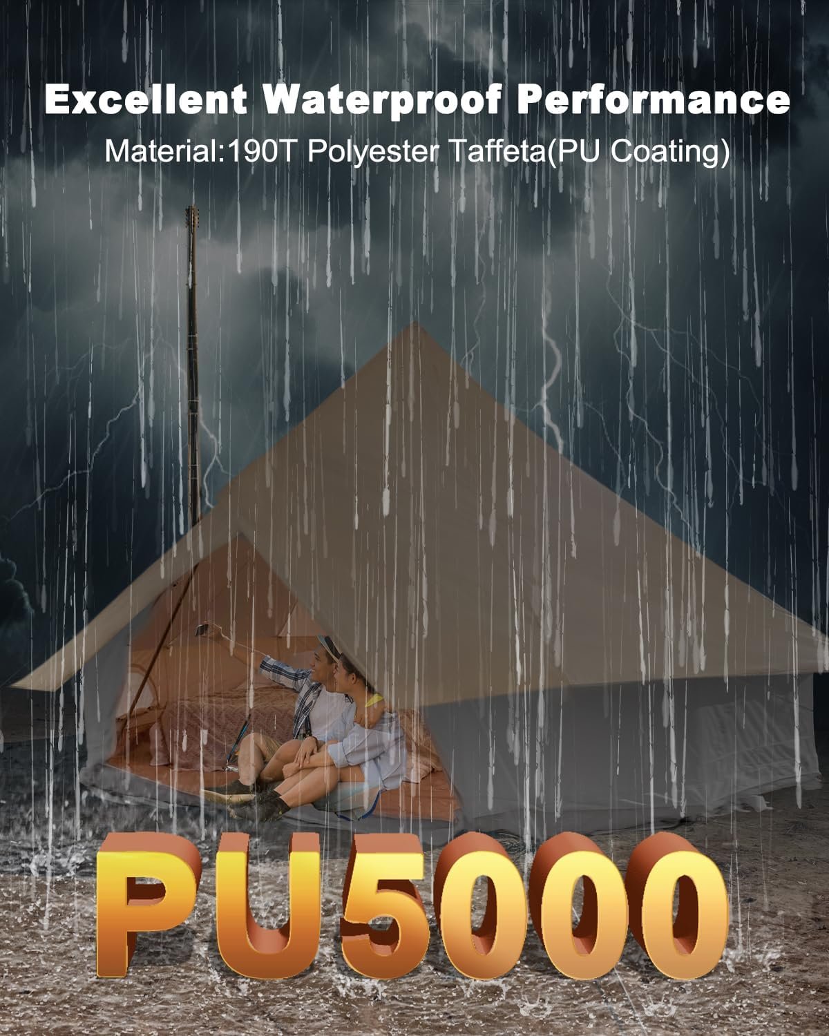 Enhanced Protective Capacity: The belltent cover design promotes better air circulation, the belltent rain cover also preventing condensation buildup inside the tent,meanwhile the belltent rainfly keeping the interior dry and comfortable.
